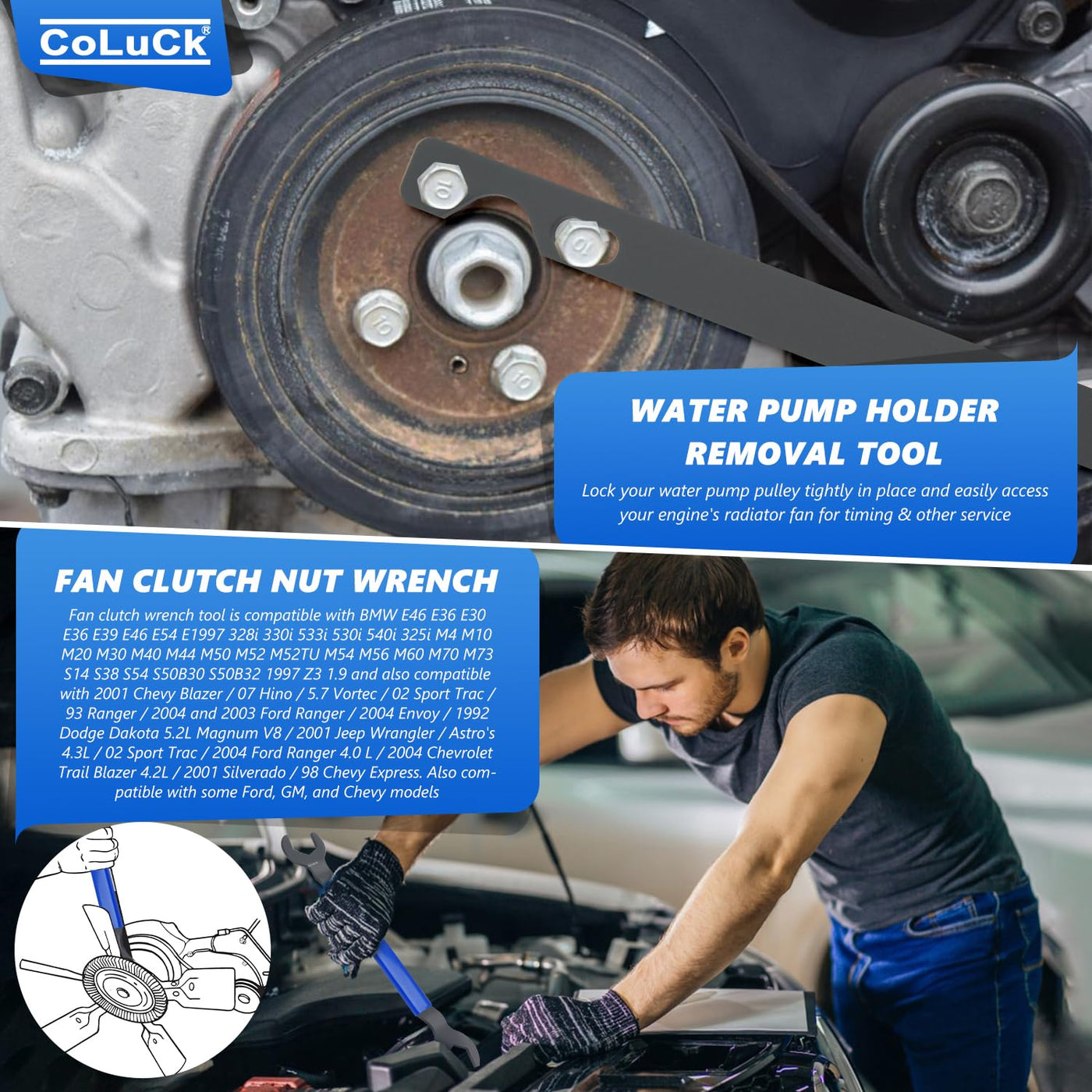 32Mm & 36Mm Fan Clutch Wrench Set,Water Pump Pulley Holder Removal Tool For Bmw, Ford, Gm, Dodge,Chevrolet,Jeep Fan Clutch Remov