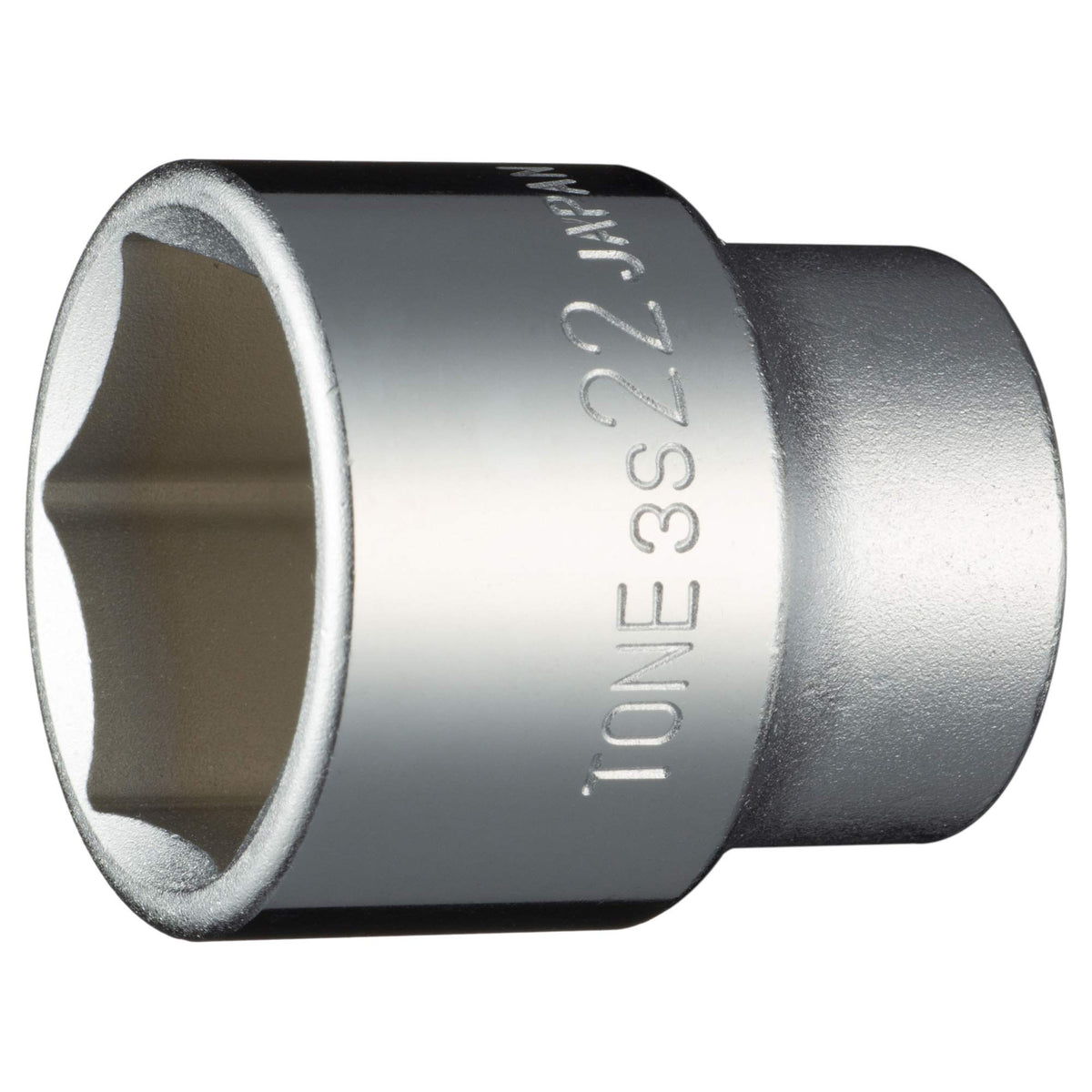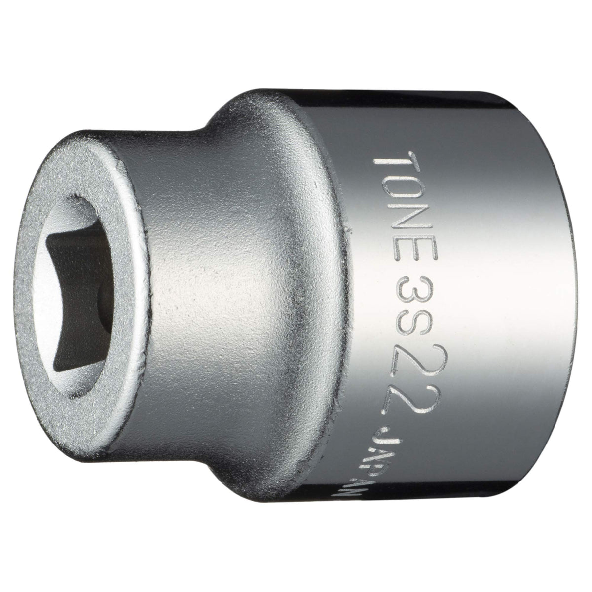 Q: What is the drive size of the TONE 3S-22 Socket?A: The TONE 3S-22 Socket features a 3/8 inch (9.5 mm) drive size, making it compatible with various ratchets and tools.