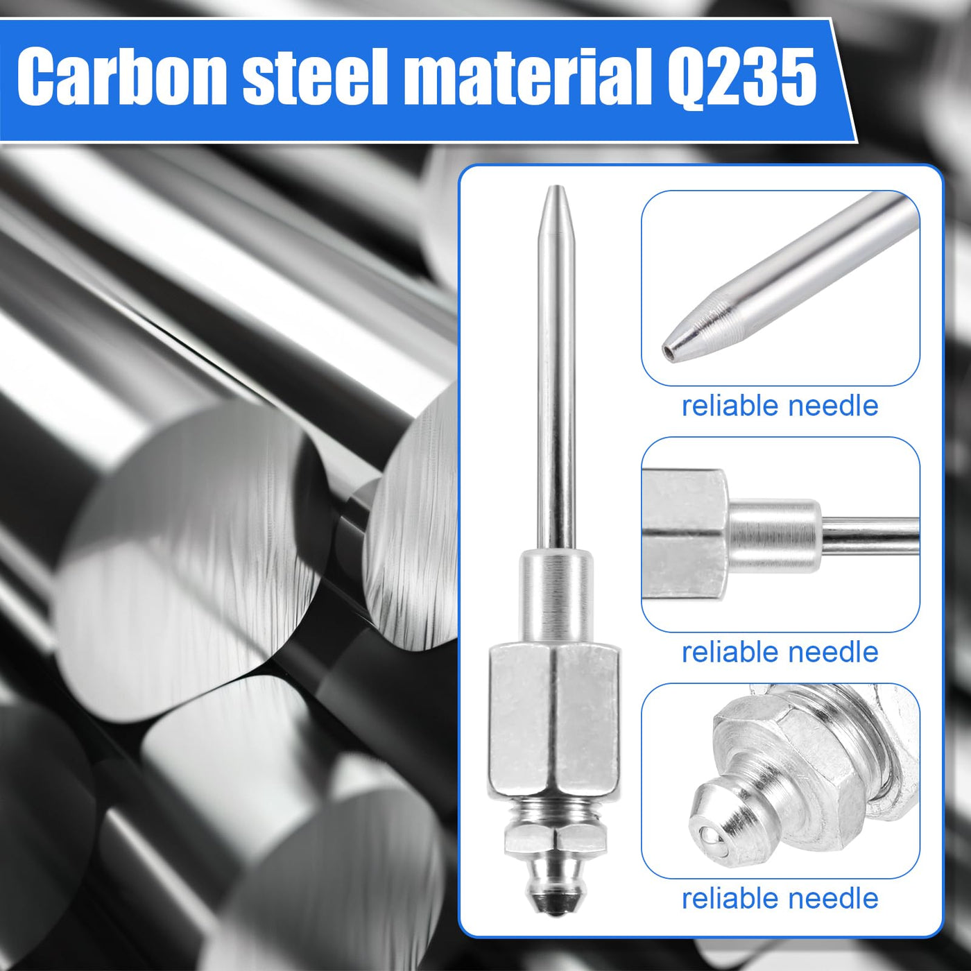 Specification: Color: silver Material: carbon steel Product Size: grease needle: 6cm/2.36 inch in length Package details: 5 x grease needle nozzle 1 x narrow needle dispenser 1 x rubber joint grease nozzle Note: Due to manual measurement, the size and weight may have a certain error. Due to the difference between monitors, there may be a slight color difference.
