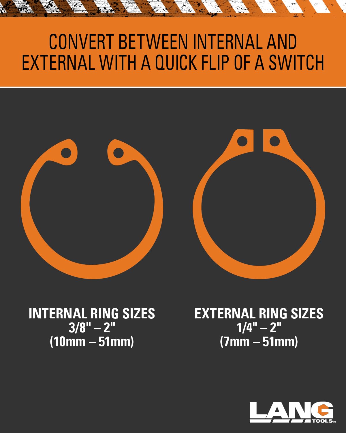 Q: Can the Quick Switch Retaining Ring Pliers be used for both internal and external rings?A: Yes, the A & E Hand Tools Lang Tools 1434 Quick Switch Retaining Ring Pliers are versatile and designed to handle both internal and external retaining rings, providing you with the flexibility needed for various tasks.