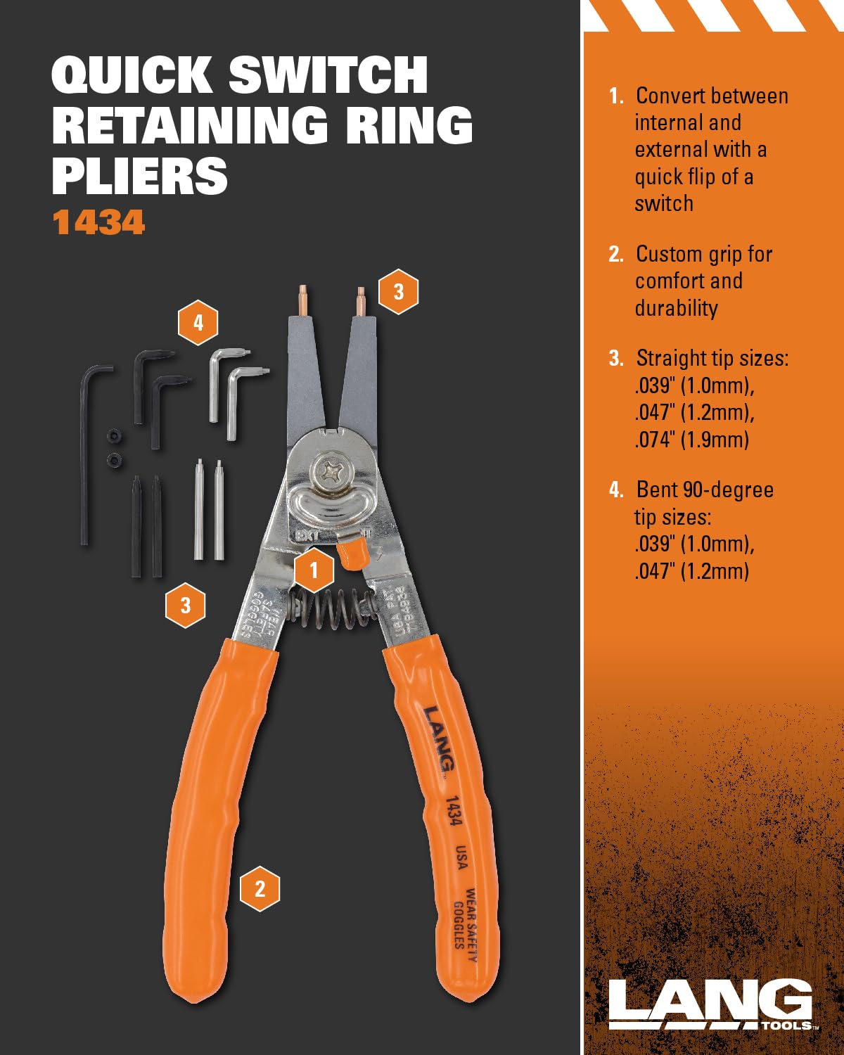 A & E Hand Tools Lang Tools 1434 Internal/External Quick Switch Retaining Ring Pliers and Tip Kit