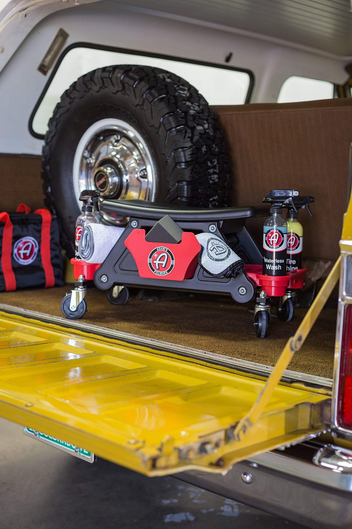 Adam's Polishes Mobile Rolling Utility Creeper Seat for Mechanics & Detailers - With Storage Trays for Tools