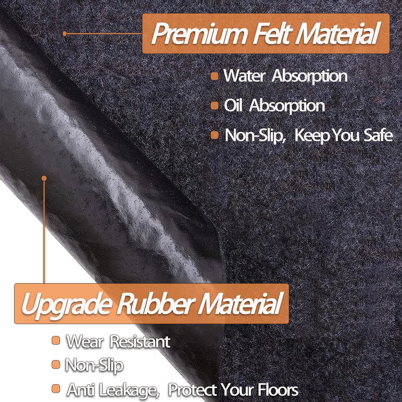 Q: What materials are used in the construction of the oil spill mat?A: The Ahpuhtan oil spill mat is made from premium soft felt with a durable rubber backing, which efficiently absorbs oil and other liquids while wicking away moisture.