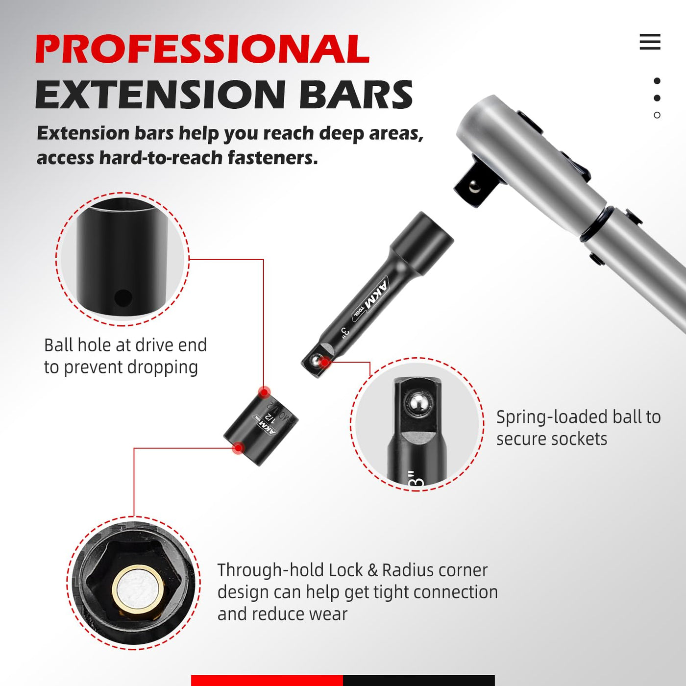 Q: What is the benefit of the radius corner design in this socket set?A: The radius corner design reduces wear on fasteners and increases torque by applying force to the walls of the fastener rather than the corners, which helps to prevent stripping and damage.
