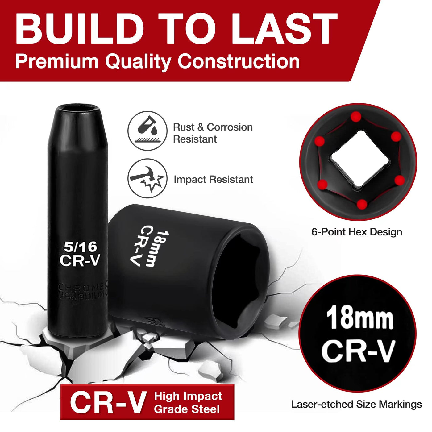 Q: How do I maintain the longevity of the sockets in this set?A: To maintain the longevity of your Aloanes Socket Set, store it in a dry place, avoid exposing it to extreme moisture, and clean the sockets after use to prevent corrosion. The black phosphate treatment adds corrosion resistance, enhancing durability.