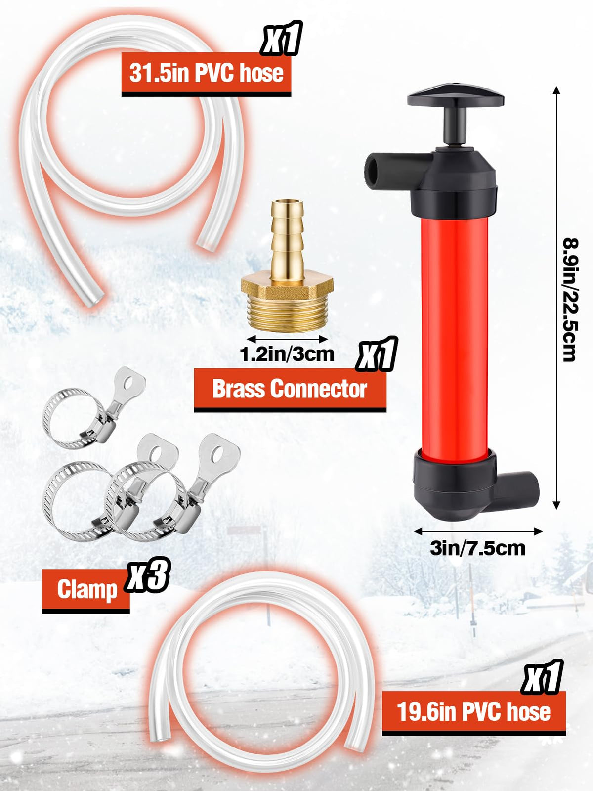 Antifreeze Hand Pump Kit - Rv Water Hand Pump Kit With 3 Clamps, Water System Antifreeze Pump To Make Winterizing Easier For Rv