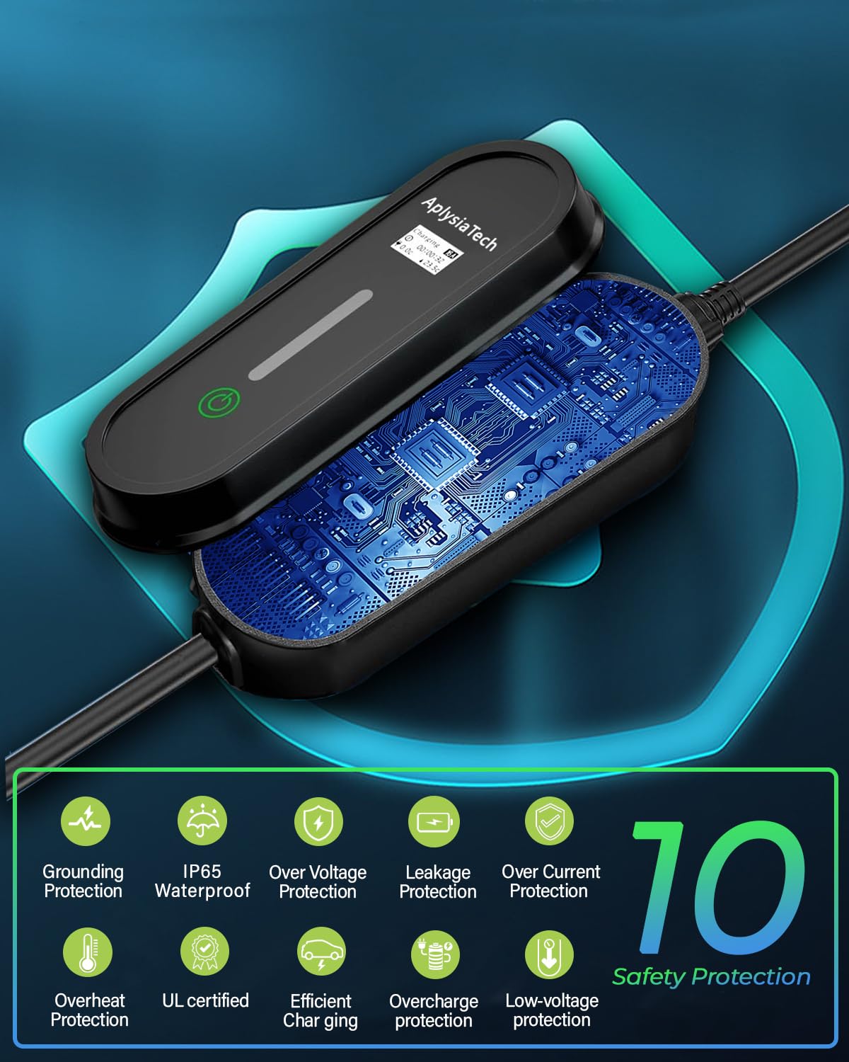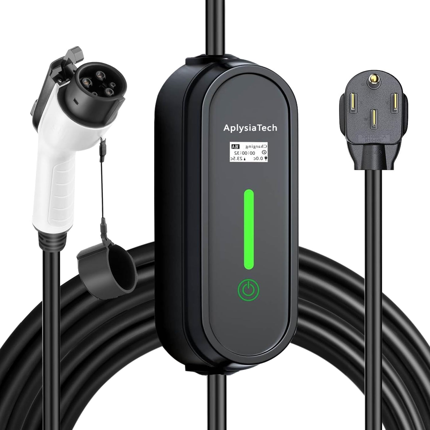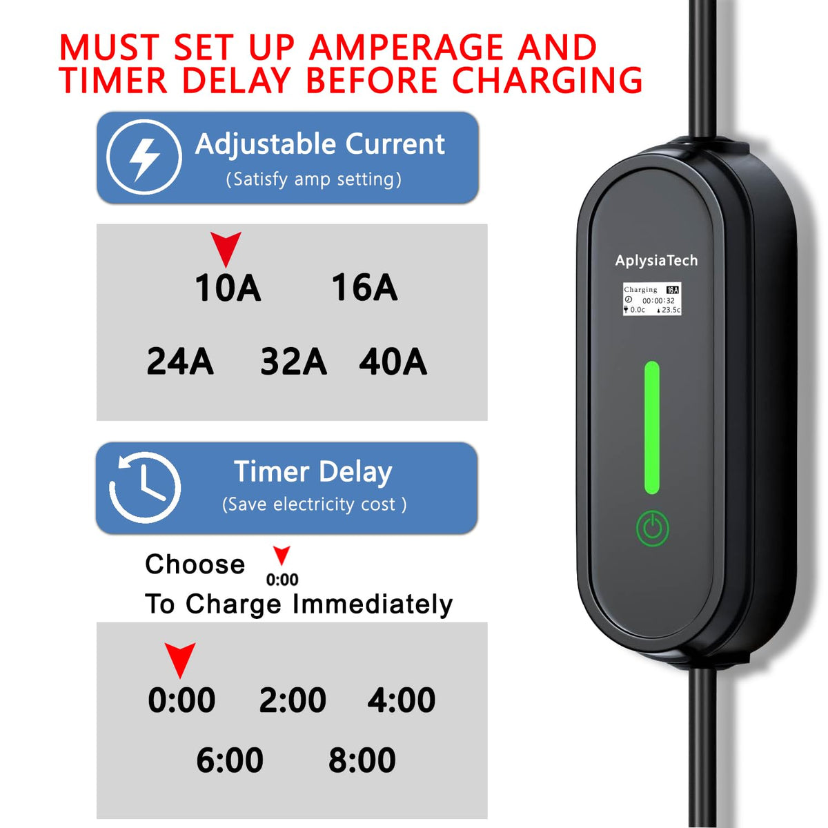 AplysiaTech Level 2 EV Charger, 13/16/24/32/40A Adjustable Plug-in Electric Car Charging Station,Portable EV Charger with 21FT C
