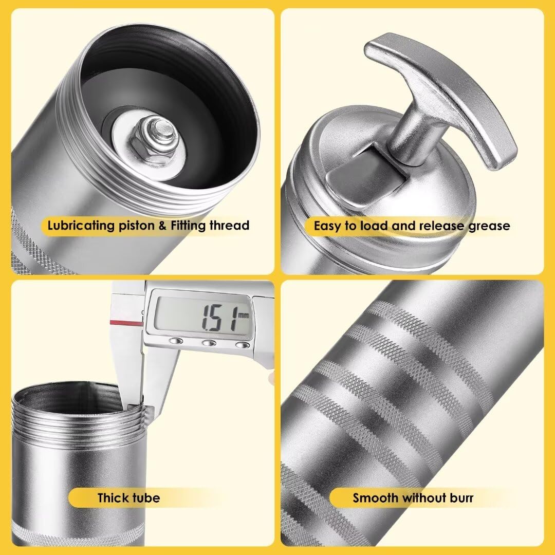 Q: What materials is the ATIVERE grease gun tube made from?A: The ATIVERE grease gun tube is made from high-quality, high-density ferroalloy materials that minimize the risk of leaks and ensure durability.
