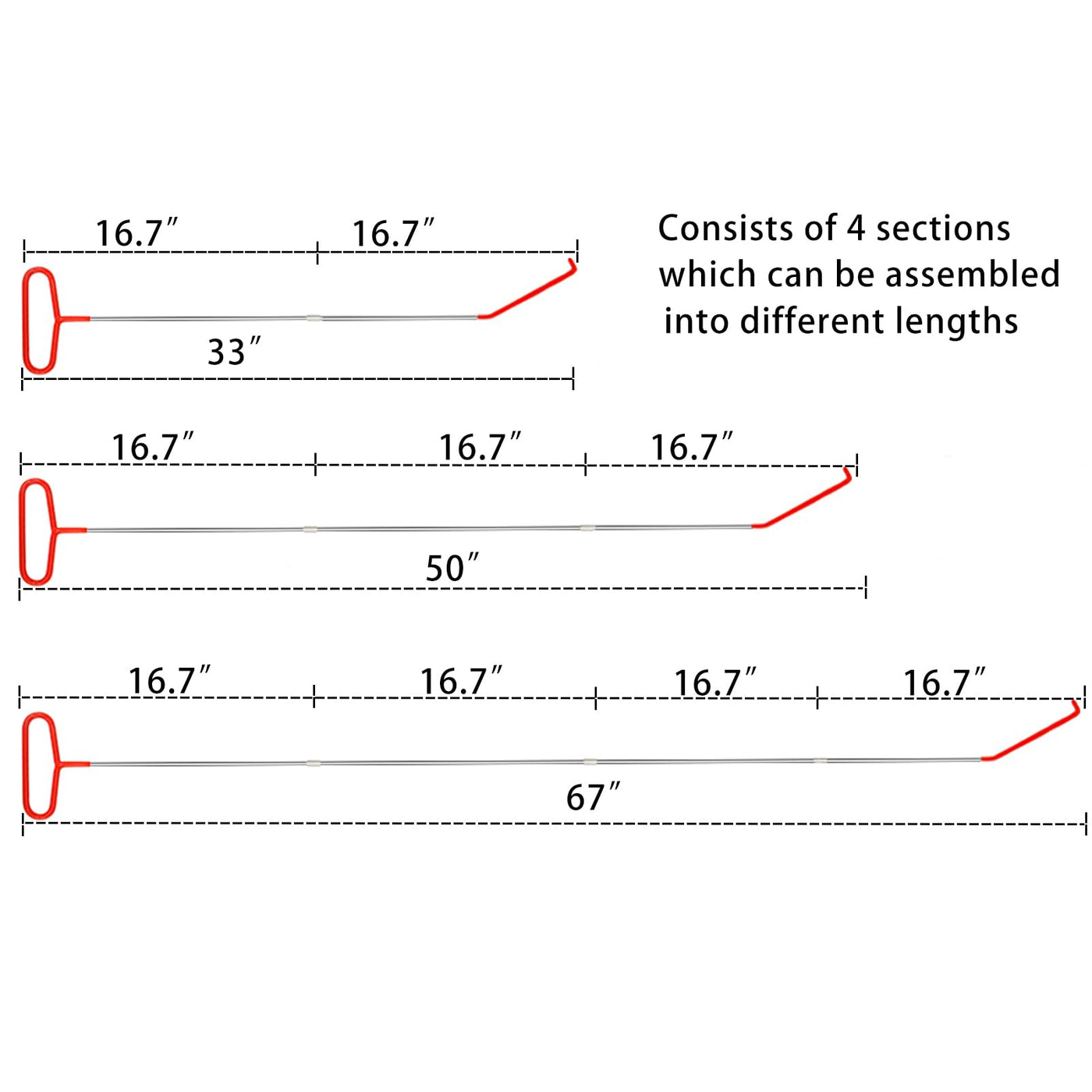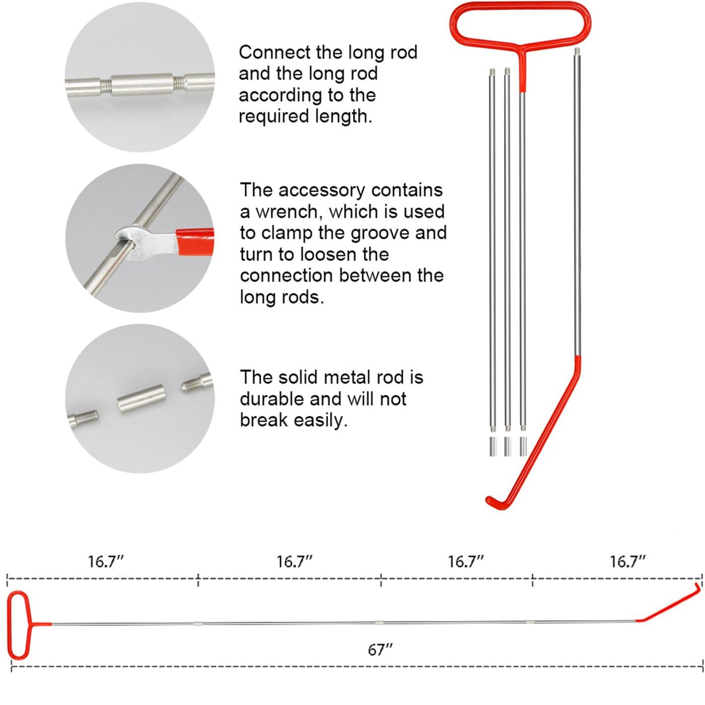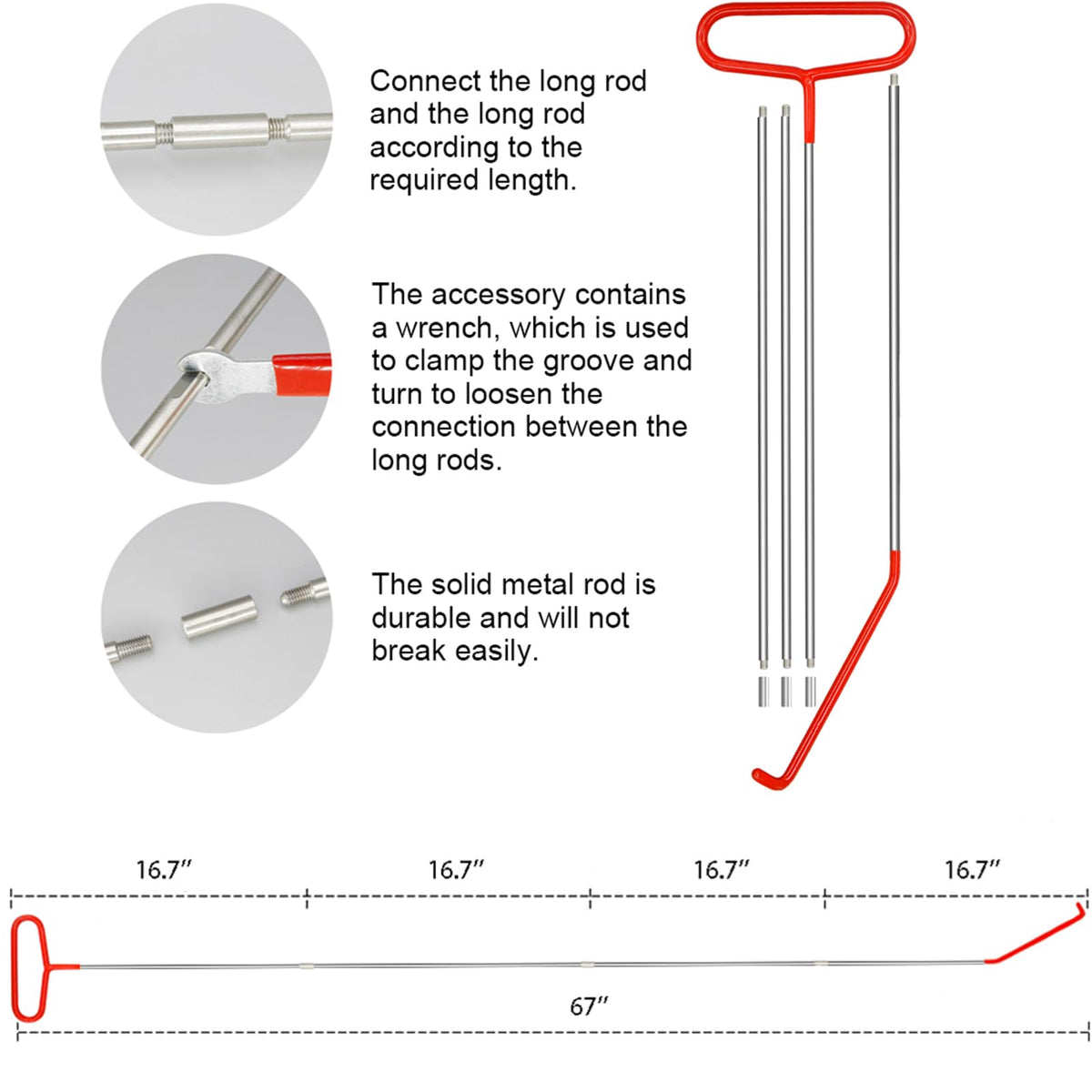 Q: How long is the long reach tool in this set?A: The long reach tool in the auomii 18PCS Tool Set extends up to 67 inches, making it ideal for reaching into tight spaces or handling tasks from a distance.