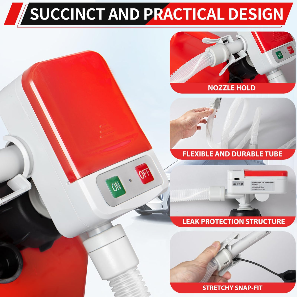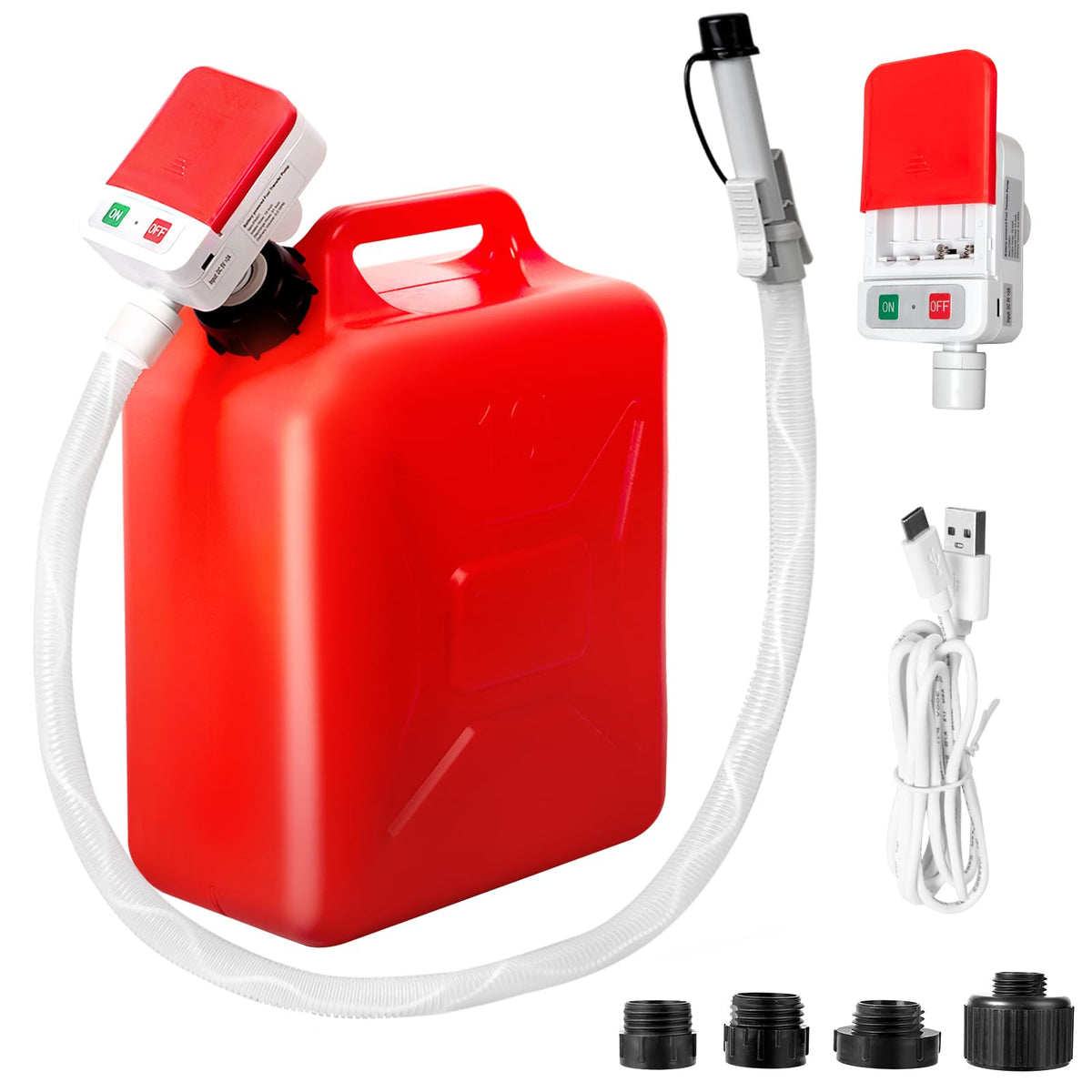 Automatic Fuel Transfer Pump With Auto-Stop, 51'' Extra Long Hose, 3.2 Gallon Per Min, Battery Or Usb Powered, 4 Can Adapters, F