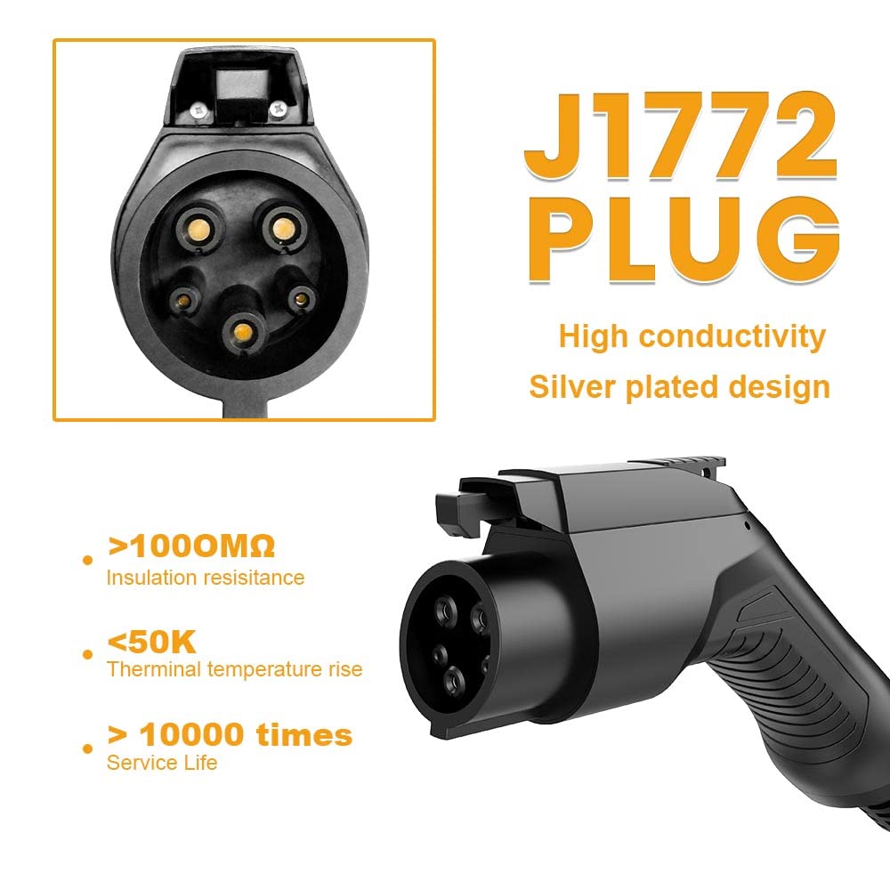 Q: What materials are used in the construction of this EV charger extension cord?A: The extension cord is made from high-strength ABS material, ensuring durability and longevity, and features an IP66 waterproof rating for safe outdoor use during charging.