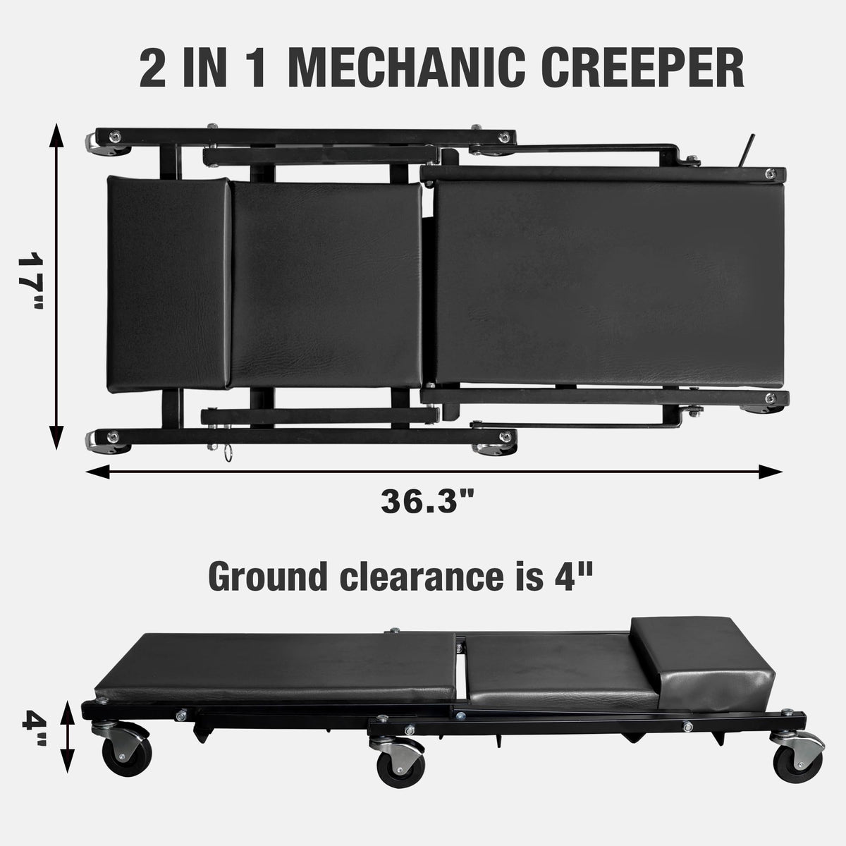 Big Red 36'' Rolling Foldable Automotive Creeper, Car Creeper, 2-In-1 Garage Shop Creeper For Auto Repair, 300 Lbs Capacity, Bla