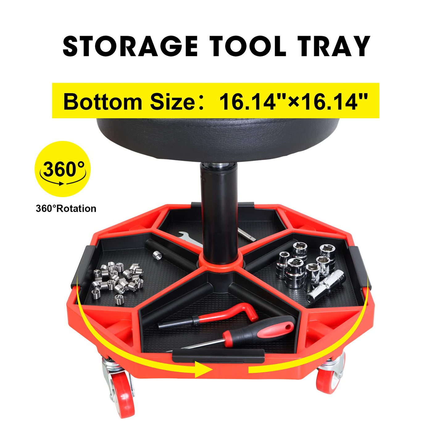 BIG RED ATRXF8308R Torin Heavy Duty Pneumatic Garage Rolling Stool/Creeper Seat with Removable Plastic Tray, 300 lb Capacity, Black/Red