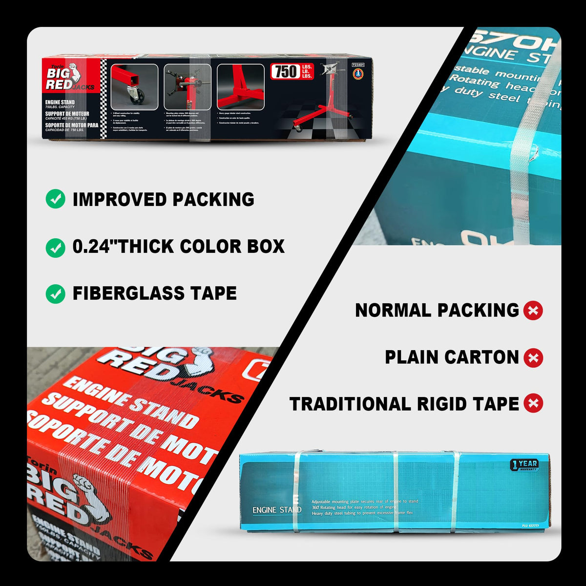 Q: Is the BIG RED T23401 engine stand stable during use?A: Yes, the engine stand features an extra-wide base that provides maximum stability, ensuring that it remains secure even when handling heavy engine blocks.
