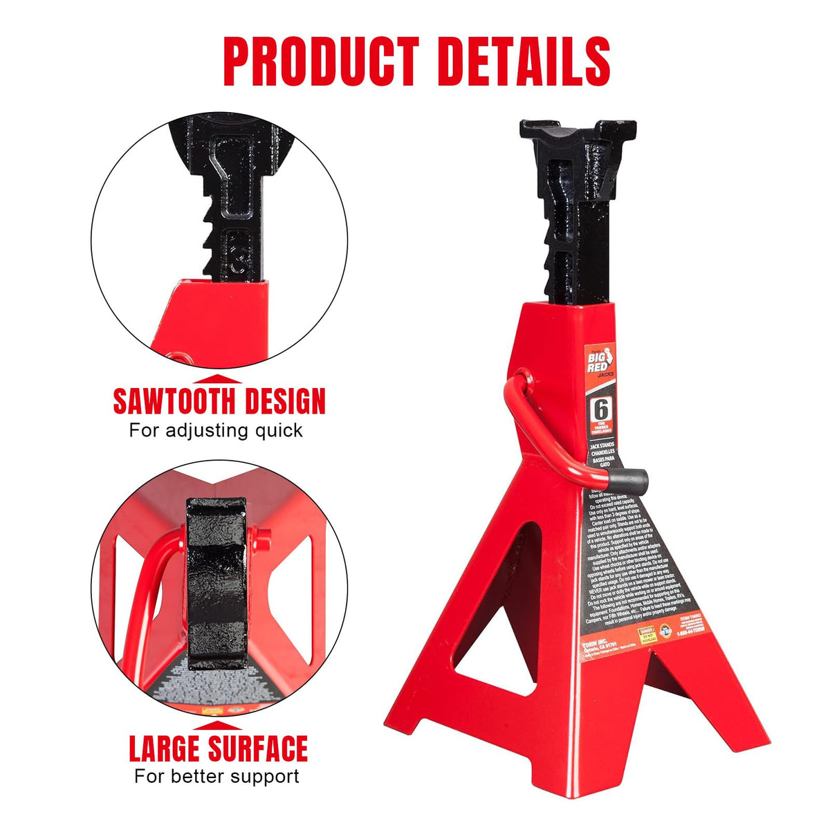 BIG RED T46202 Torin Steel Jack Stands: 6 Ton (12,000 lb) Capacity, Red, 1 Pair