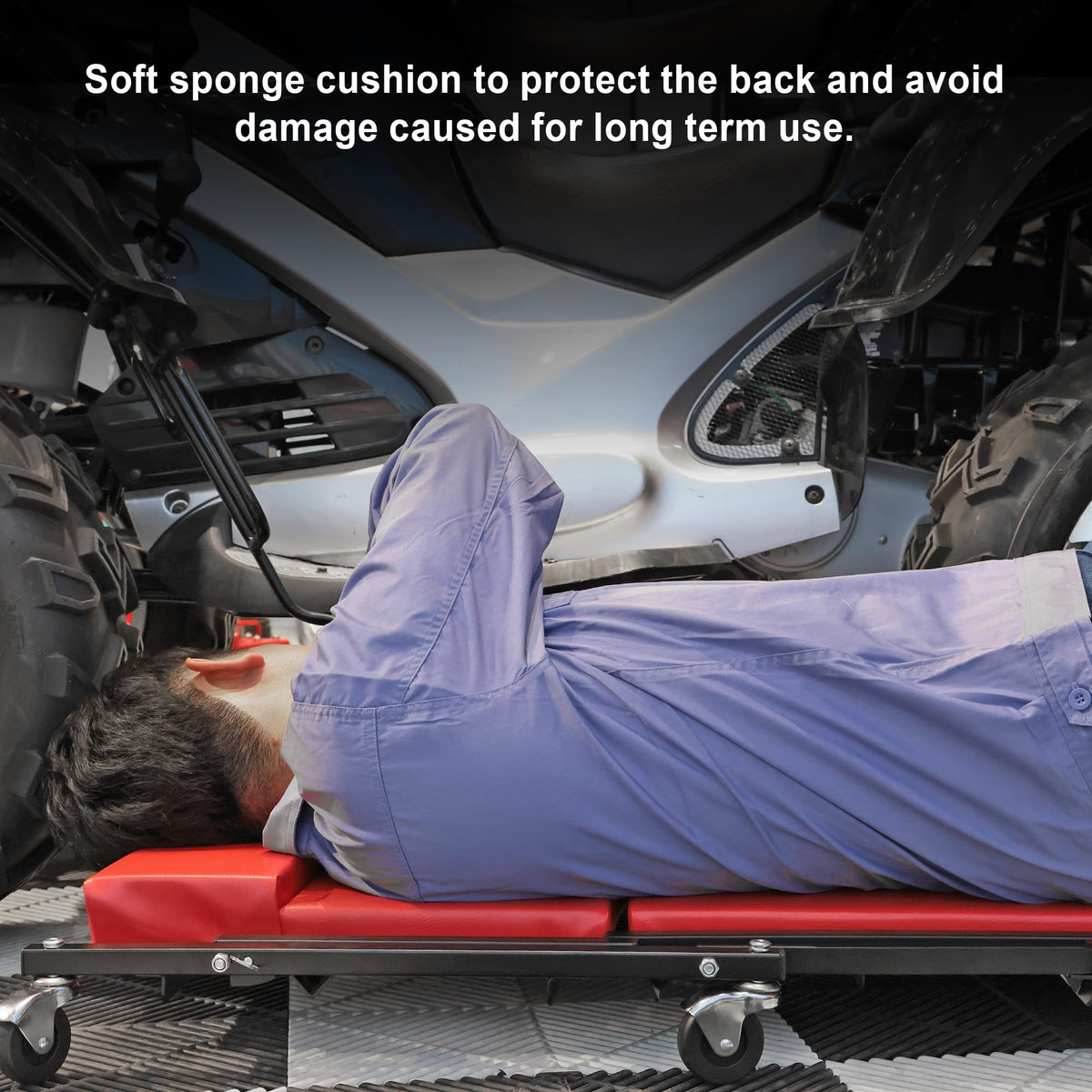 Q: What kind of maintenance is required for the creeper's padding?A: The leatherette surface of the creeper's padding is easy to care for; you can simply wipe away water and oil stains with a damp cloth to keep it clean.