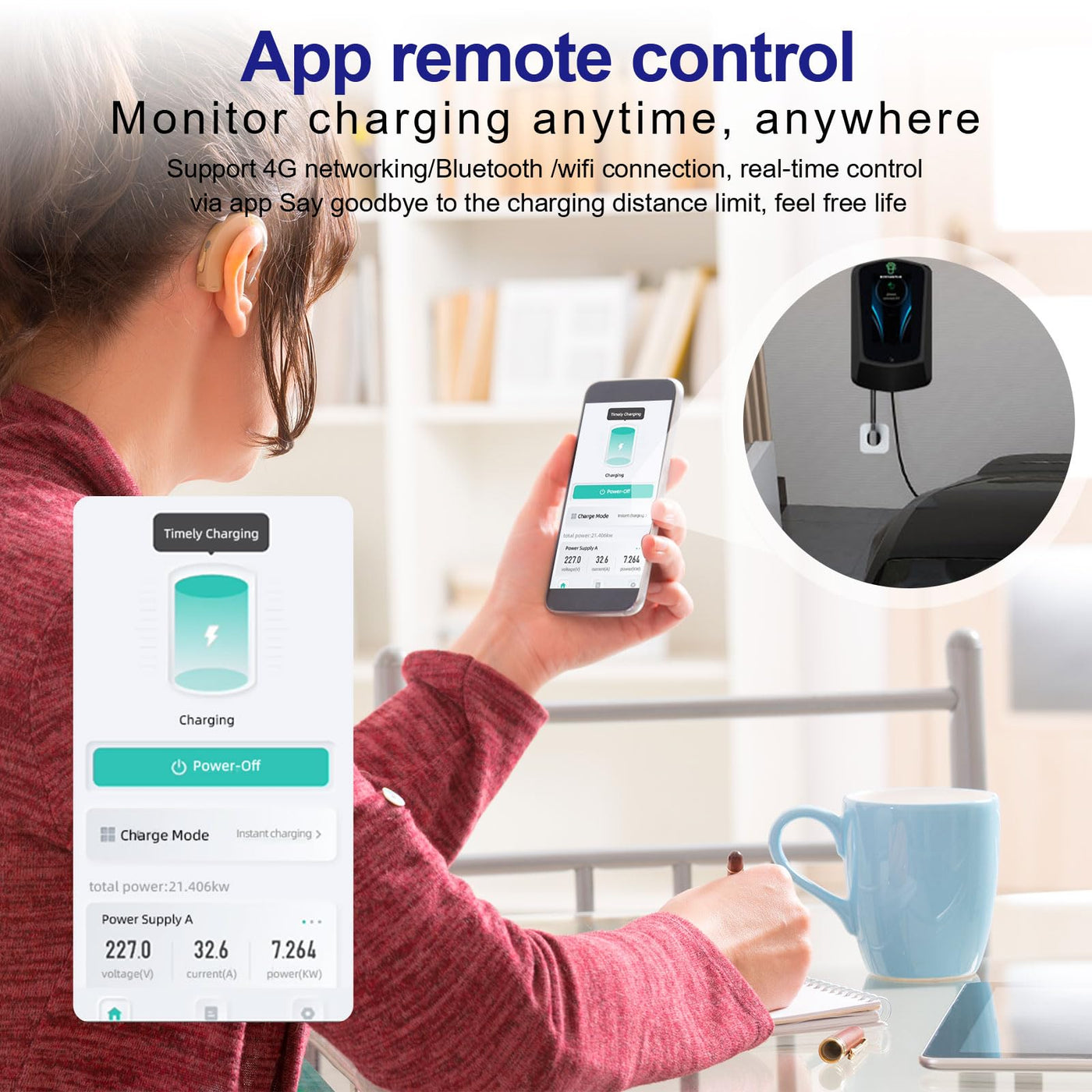 Q: How can I monitor and control the charging process?A: You can monitor and control the charging process by connecting your mobile phone to WiFi and scanning the QR code provided in the manual to download the dedicated app for remote access.