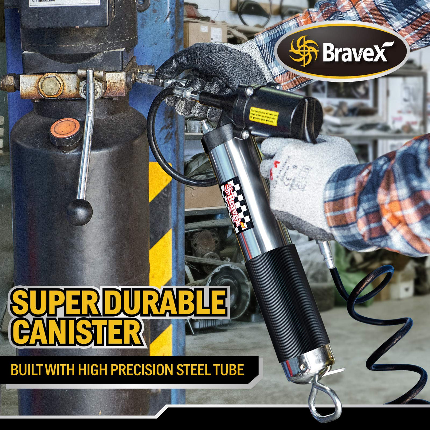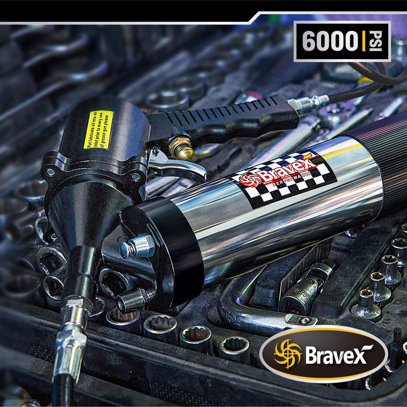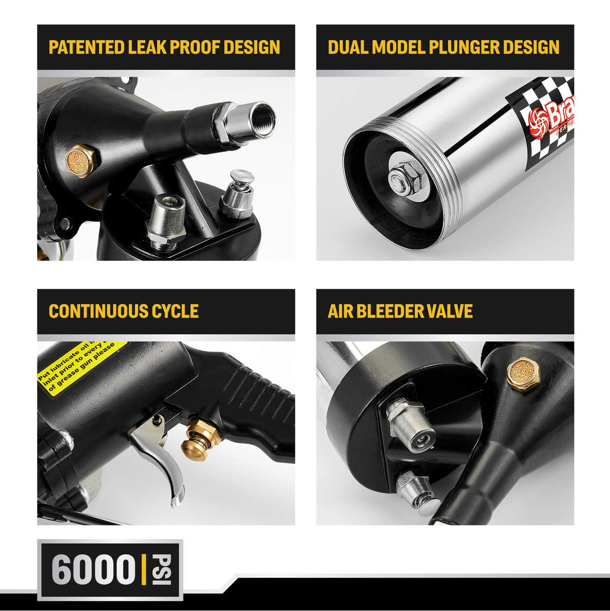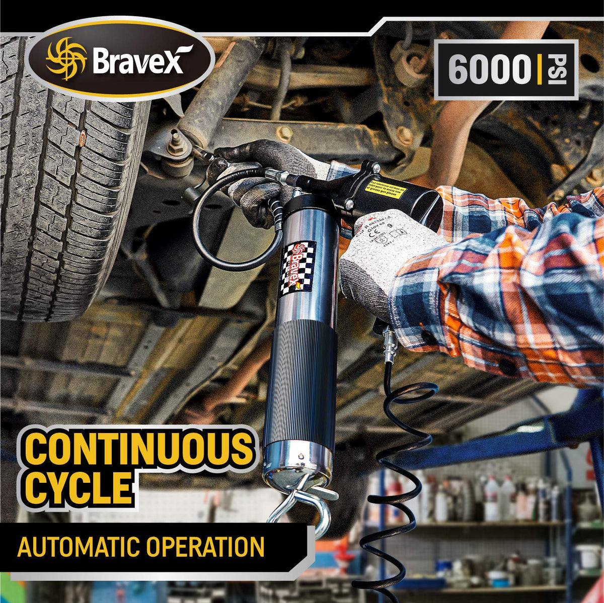 Bravex Professional Pneumatic Automatic Grease Gun, Continuous Cycle Heavy Duty 6000 Psi Air Compressor Grease Gun With Flex Hose 18 Inch
