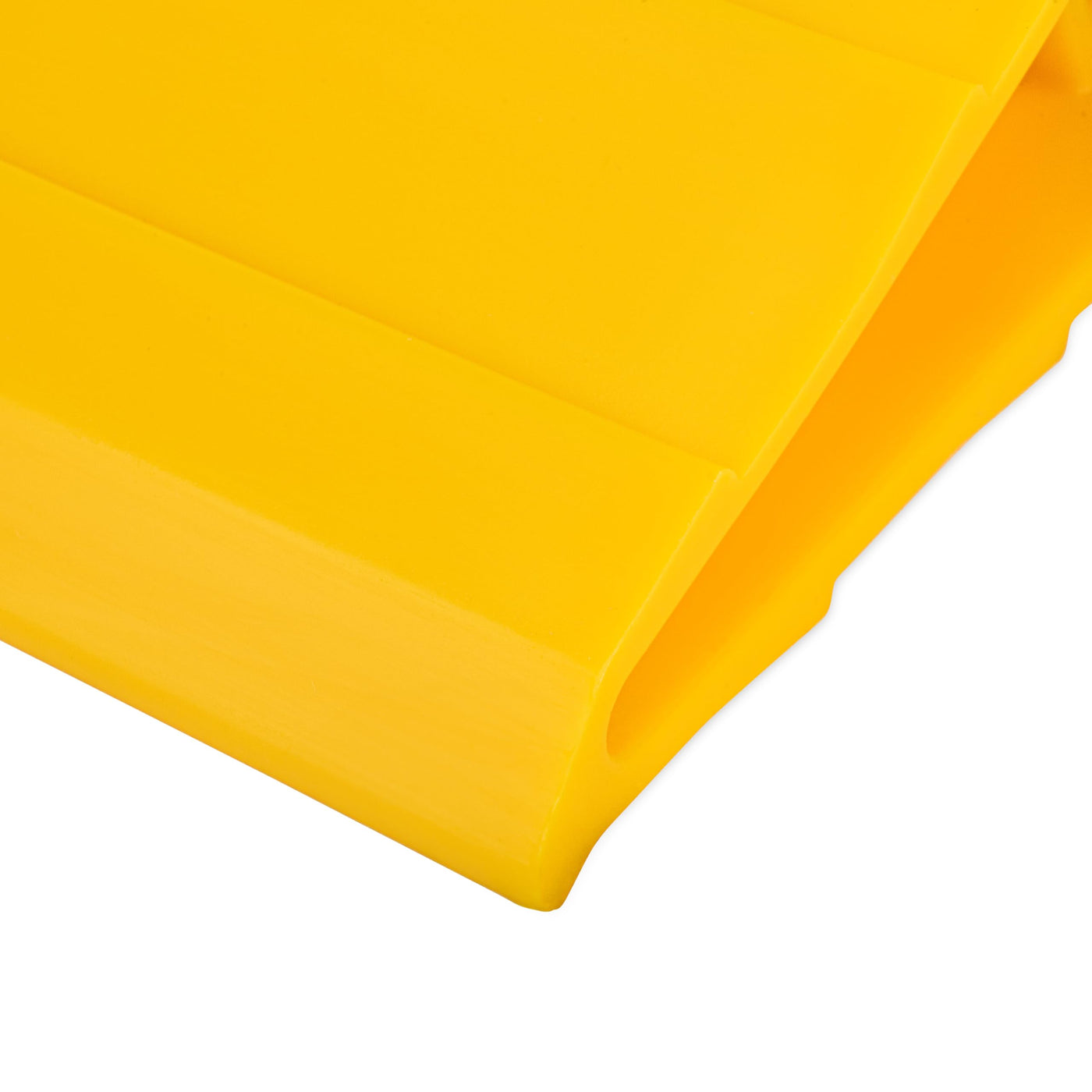 Q: What materials are used in the construction of these wheel chocks?A: The Camco Wheel Chocks are made from high-quality plastic with built-in UV inhibitors, ensuring durability and long-lasting performance even in harsh outdoor conditions.
