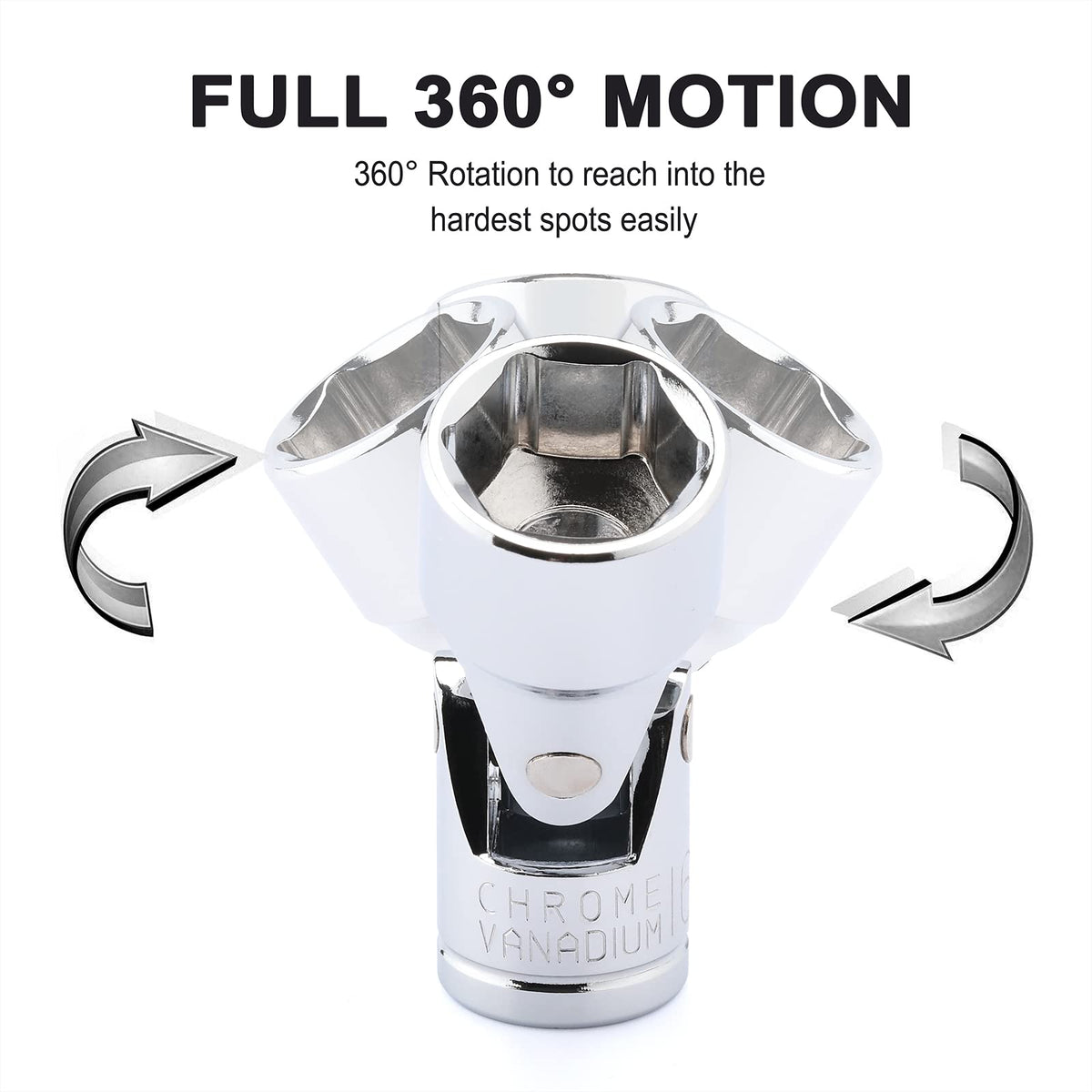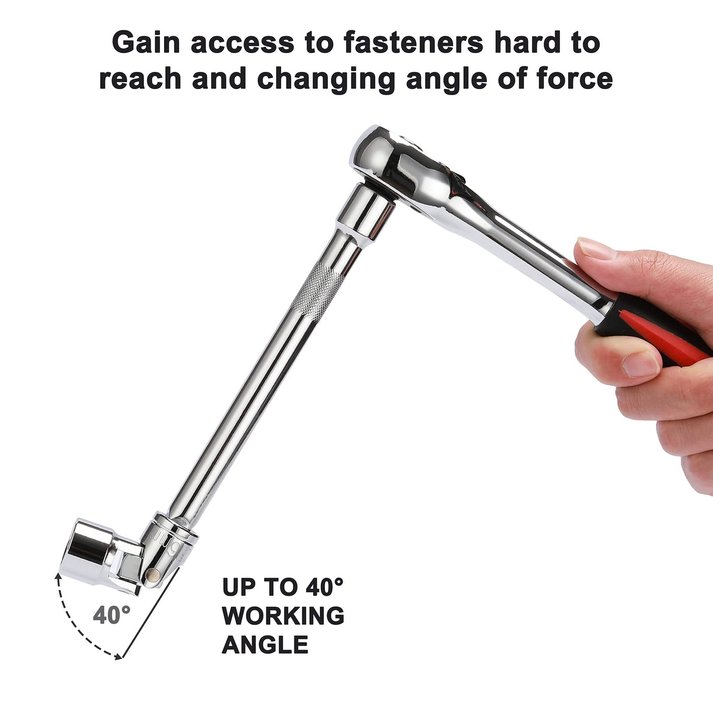 Q: Is this socket set suitable for hard-to-reach fasteners?A: Yes, the flex socket design allows access to fasteners that are hard to reach, providing versatility in various working angles.