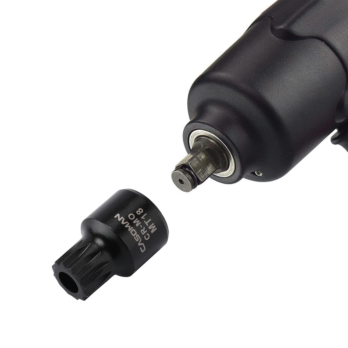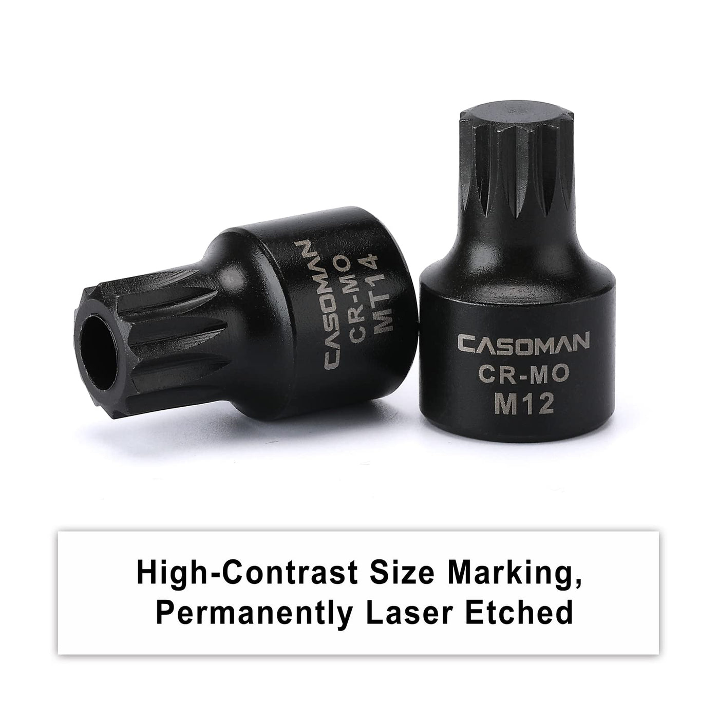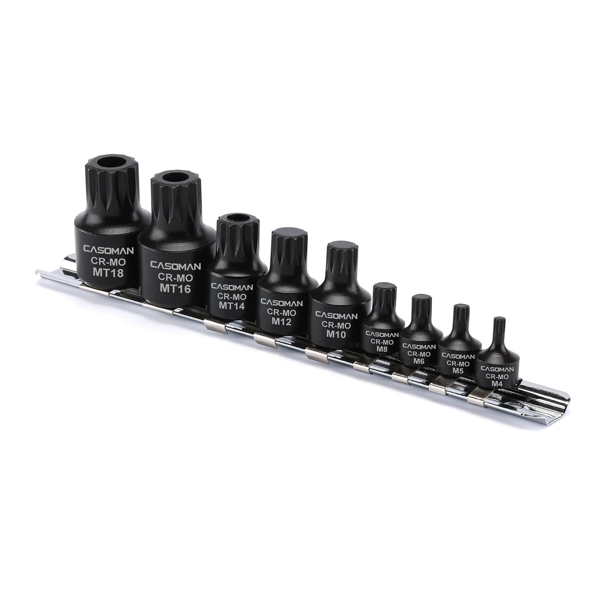 CASOMAN 9-Piece Low Profile Impact Triple Square Bit Socket Set, Includes Storage Rail, 1/4', 3/8' and 1/2' Drive, CR-MO Steel, Designed for Impact Use