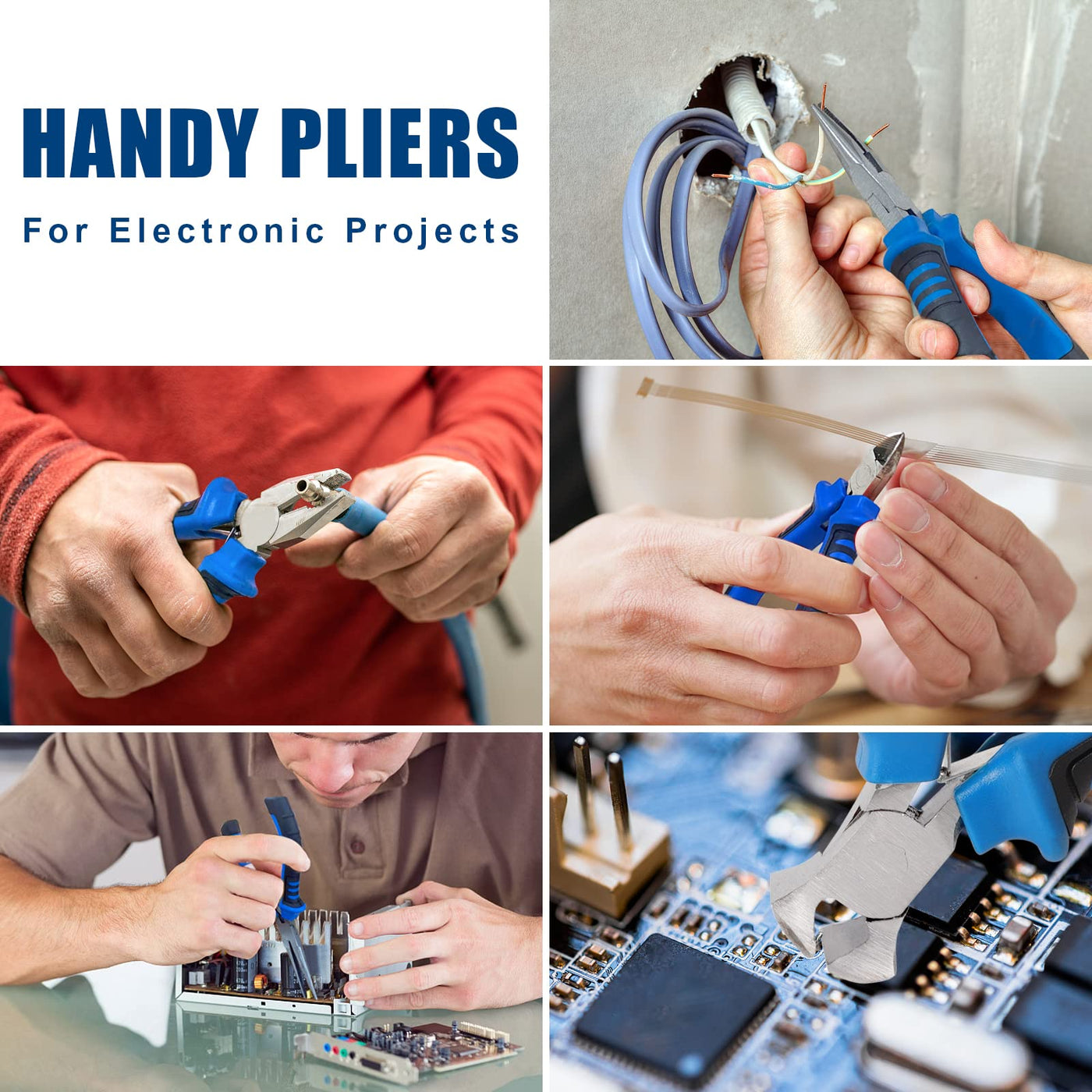 Q: What types of tasks can I perform with the COMOWARE 6 Pcs Mini Pliers Set?A: The COMOWARE Mini Pliers Set is ideal for various tasks such as electronic repairs, cutting steel wire, clamping, and precision work in hard-to-reach spaces. It is suitable for DIY projects, jewelry making, and home appliance repairs.