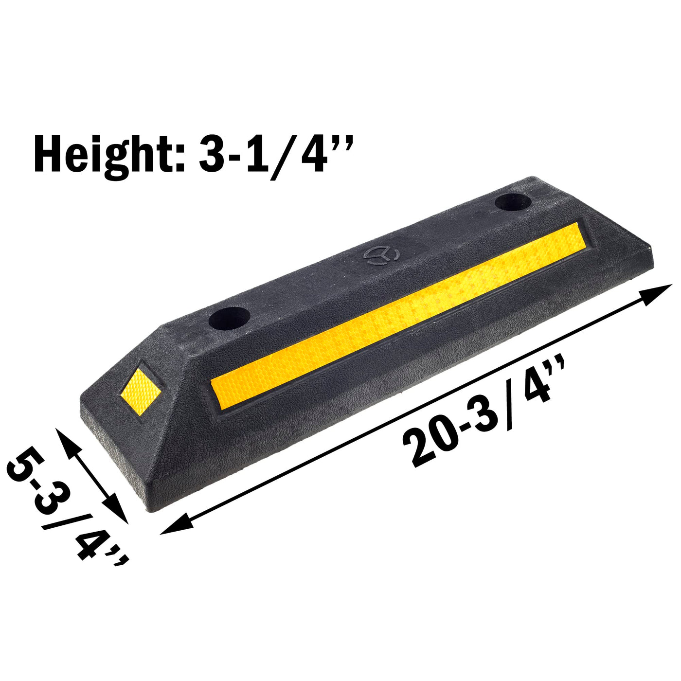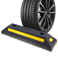 Features: Rugged, Durable, Reliable Wheel Stop Heavy-Duty Reinforced Curb Tire Construction Provides Convenient Vehicle Parking Assistance Universal Placement Perfect for Garage, Driveway, Parking Lot High-Visibility, Bright Yellow Reflective Safety Stripes Marine Grade Waterproof & Weather-Resistant Design Hassle-Free, Tire Stoppers Designed to Be Placed on the Ground Floor Integrated Mounting Holes for Permanent Installation Front or Rear Vehicle Tire Application Can be Used on Asphalt, Gravel and Uneven Surfaces Used for Car, Truck, Bus, Van, Trailer, RV, Forklift & More