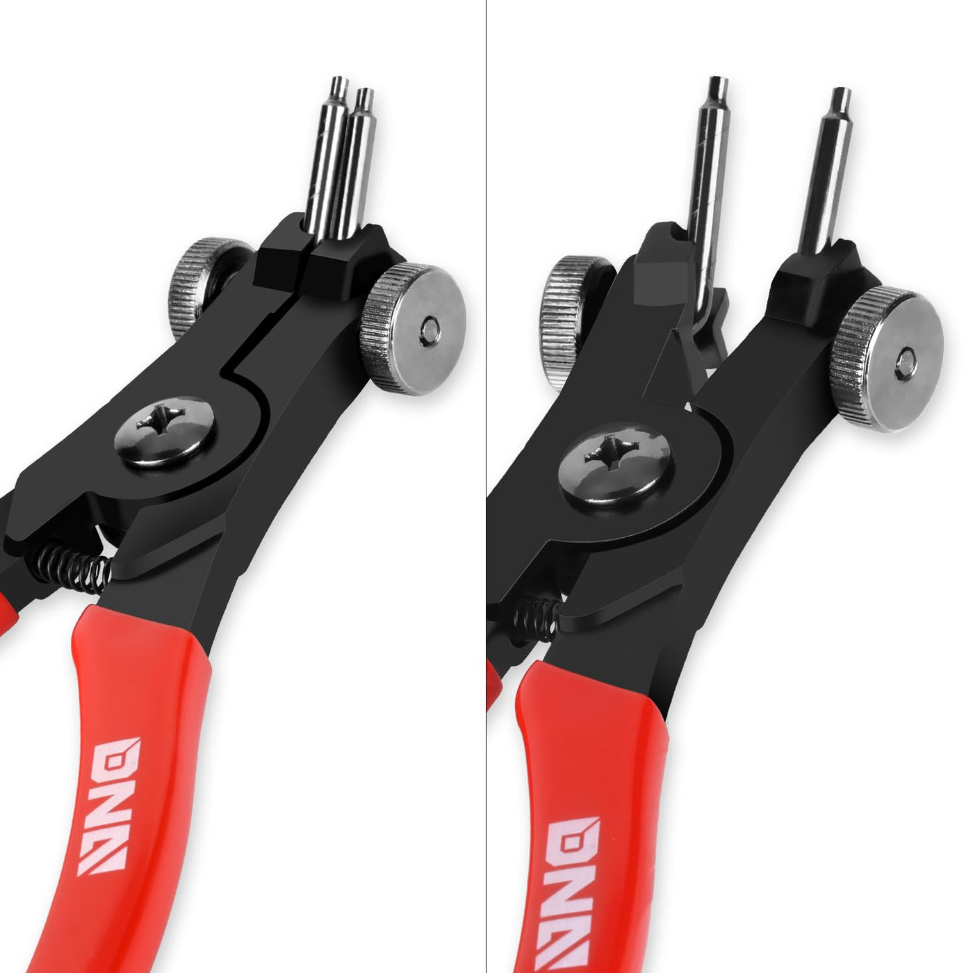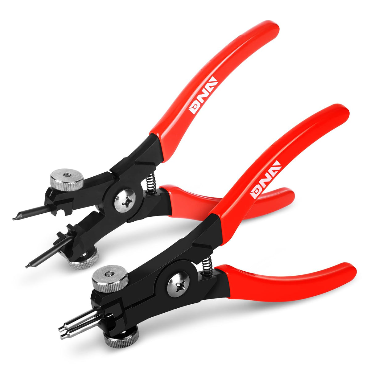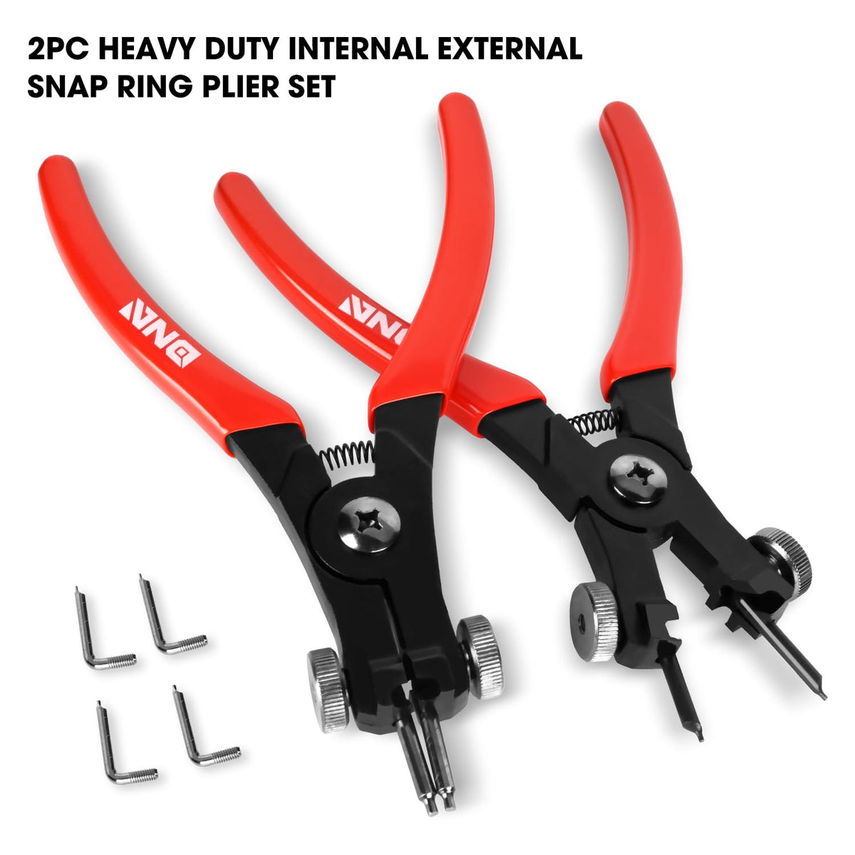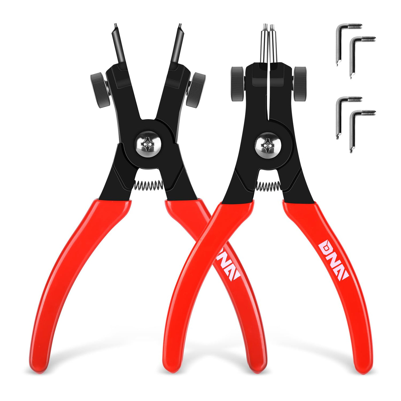 DNA Launches a Multiple (180 °, 90 °, and 45 °) Angle Adjustment Snap Ring Plier Set Without The Need to Replace The Pliers Head, With Just One Pliers to Help You Meet Your Work Needs at Multiple Angles! | VERSATILITY - Our Pliers are Designed to Handle a Wide Range Of Tasks, From Internally and Externally, Bending and Shaping Wires to Installing and Removing Snap Rings and Circlip Springs, The Rounded and Pointed Jaws Provide a Secure Grip On Various Types Of Materials, Ensuring Precise Work Every Time. | EASY TO OPETATE - Just Turn The Nut, Remove The Pliers, Reposition The Groove, and Fix It to Complete The Multi Angle Application; Jaw Length: 6.5 Inches | DURABILITY - Constructed From Premium Quality Steel, These Pliers are Built to Last. The Heat-Treated Jaws Offer Superior Strength and Resistance to Wear and Tear, Ensuring Long-Lasting Performance. | SAFETY - Spring Design Allows You to Save More Effort in Your Work and Adapt to The Operation of More Components; The Rounded Jaw Design Helps Protect Delicate Components From Damag
