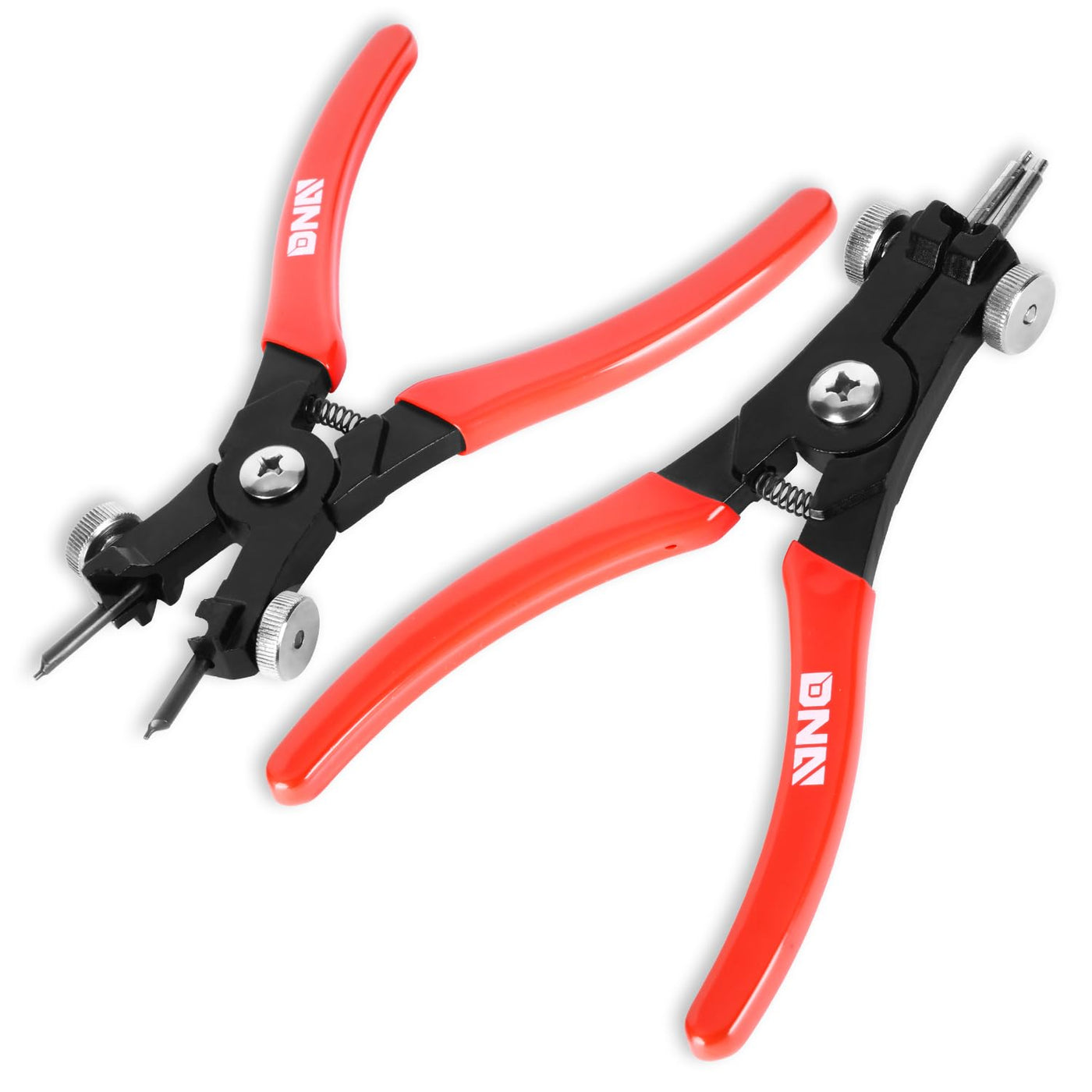 Q: What types of tasks can I perform with the DNA MOTORING Snap Ring Pliers?A: The DNA MOTORING Snap Ring Pliers are designed for a wide range of tasks including installing and removing snap rings, circlip springs, and bending or shaping wires. Their versatile design allows you to work both internally and externally, making them suitable for various applications.
