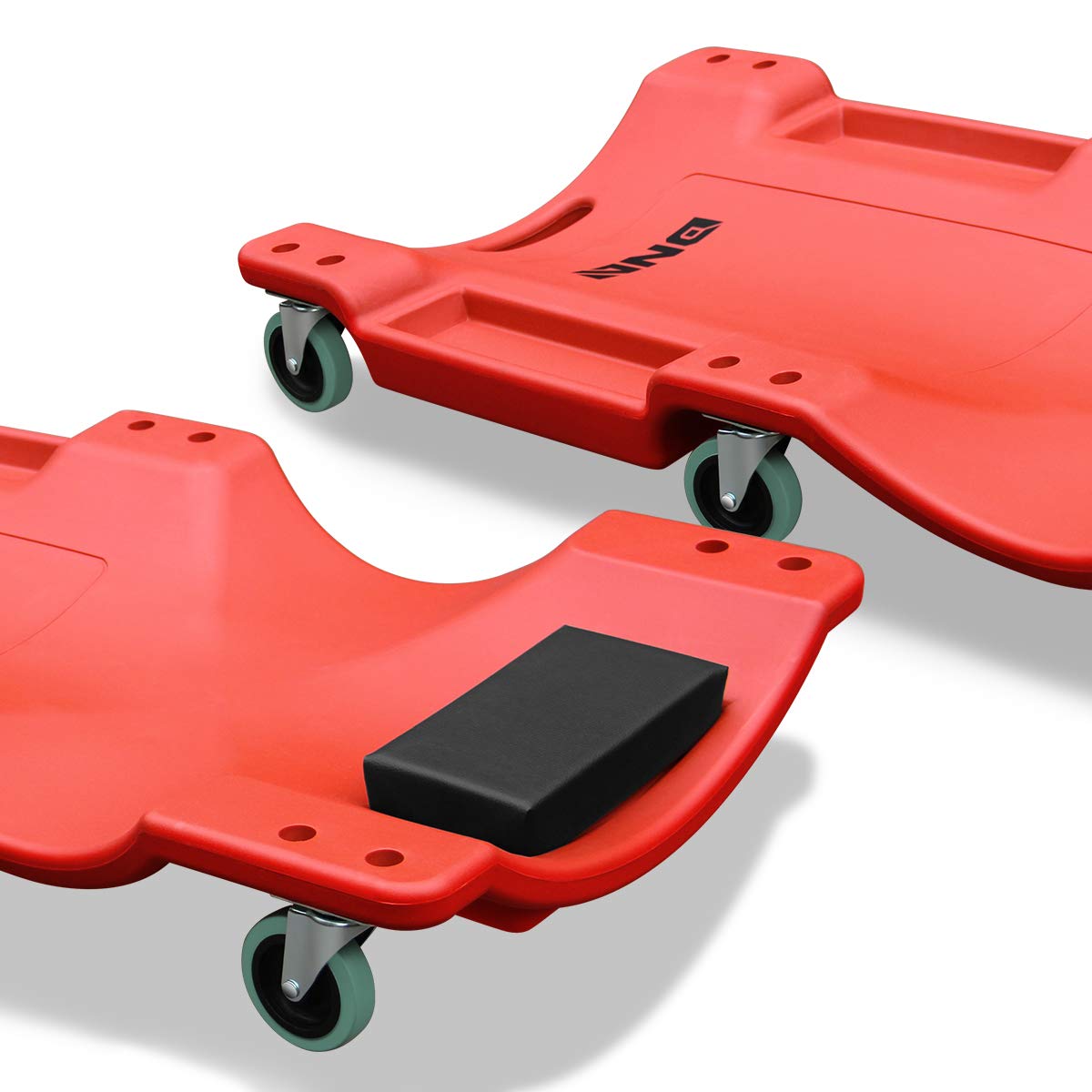 Q: What are the dimensions of the automotive creeper?A: The creeper measures 40 inches in length and 19 inches in width, providing ample space for comfortable use while working under vehicles.