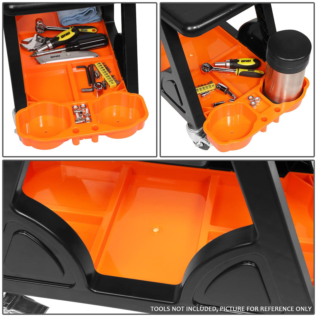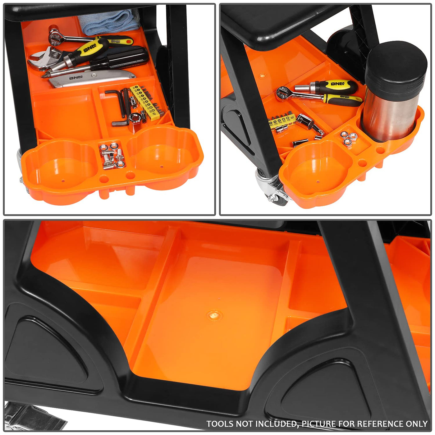Dna Motoring Tools-00188 Mechanic Stool - 23'' X 13.5'' X 10.5'' (L X H X W), Rolling Work Seat W/Lockable Swivel Wheels And Sto
