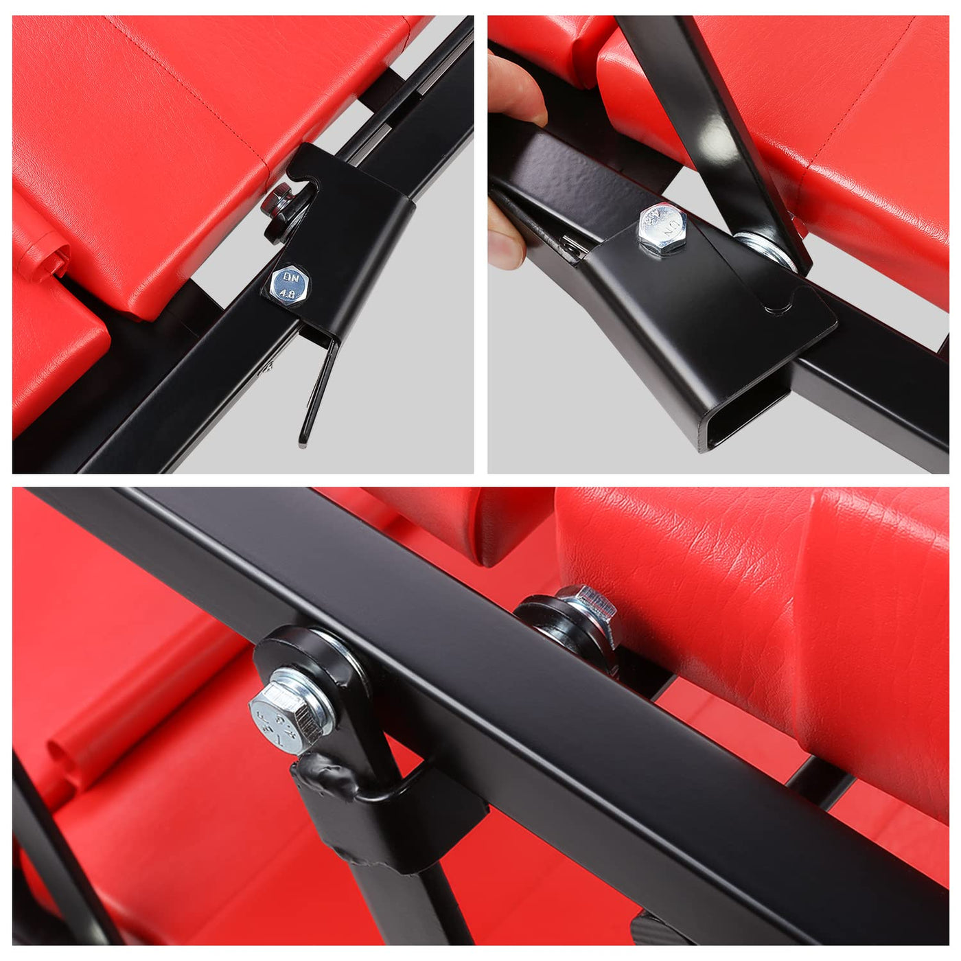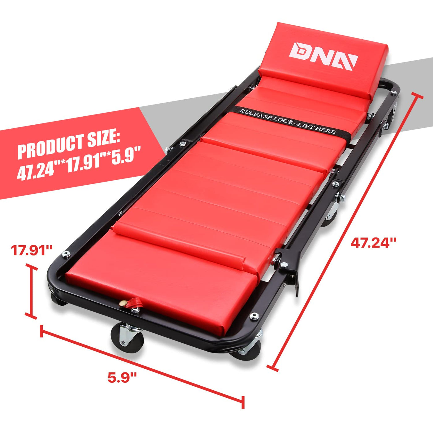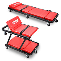 DNA Motoring TOOLS-00192 48' 2 IN 1 Folding Rolling Garage Shop Creeper Roller Seat, 7 Pcs 2' Casters, 350 Lbs Weight Capacity, Red
