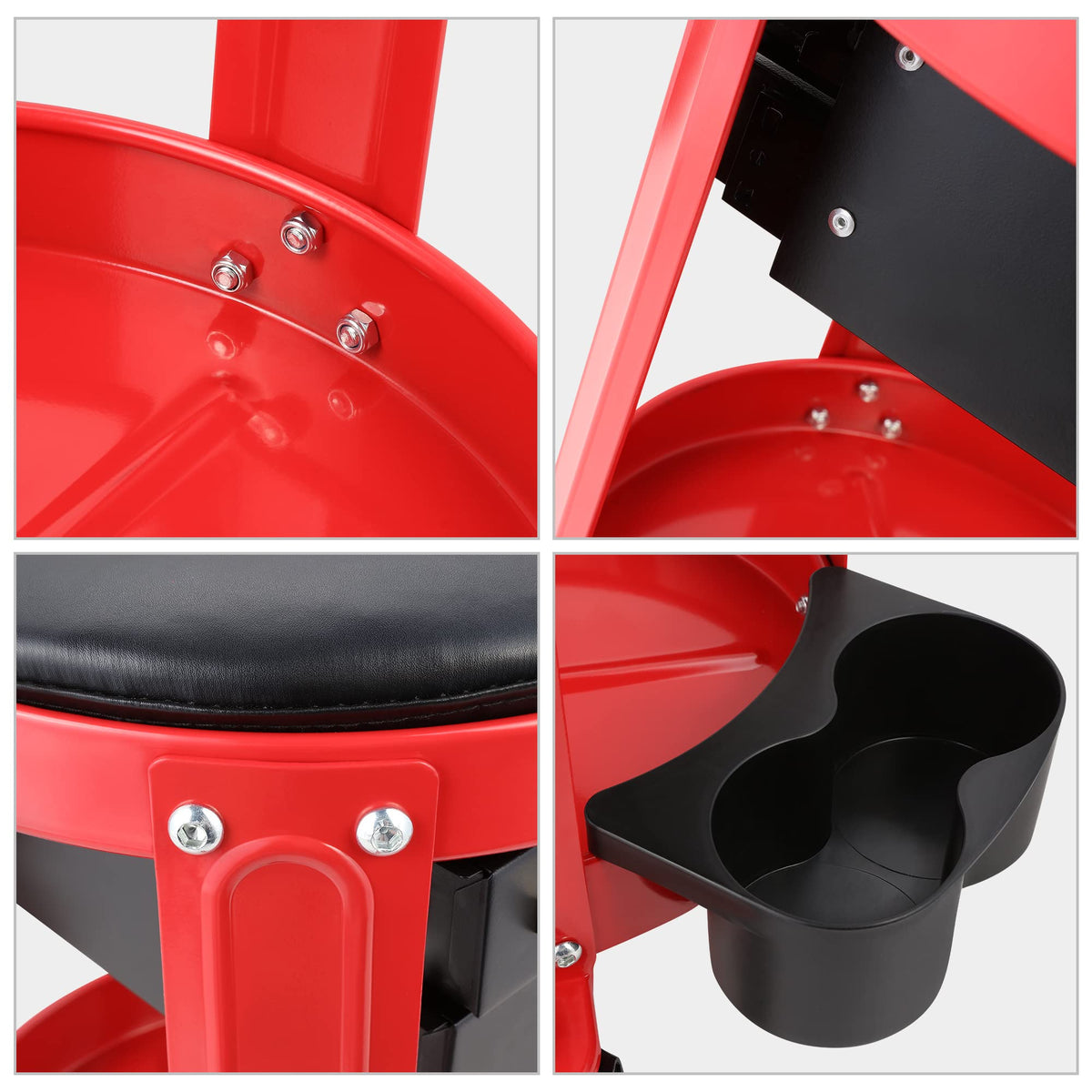 Dna Motoring Tools-00197 Round Mechanics Roller Seat Creeper Stool With Padded Cushion, Tool Storage Drawer & Tray, 300 Lbs Max