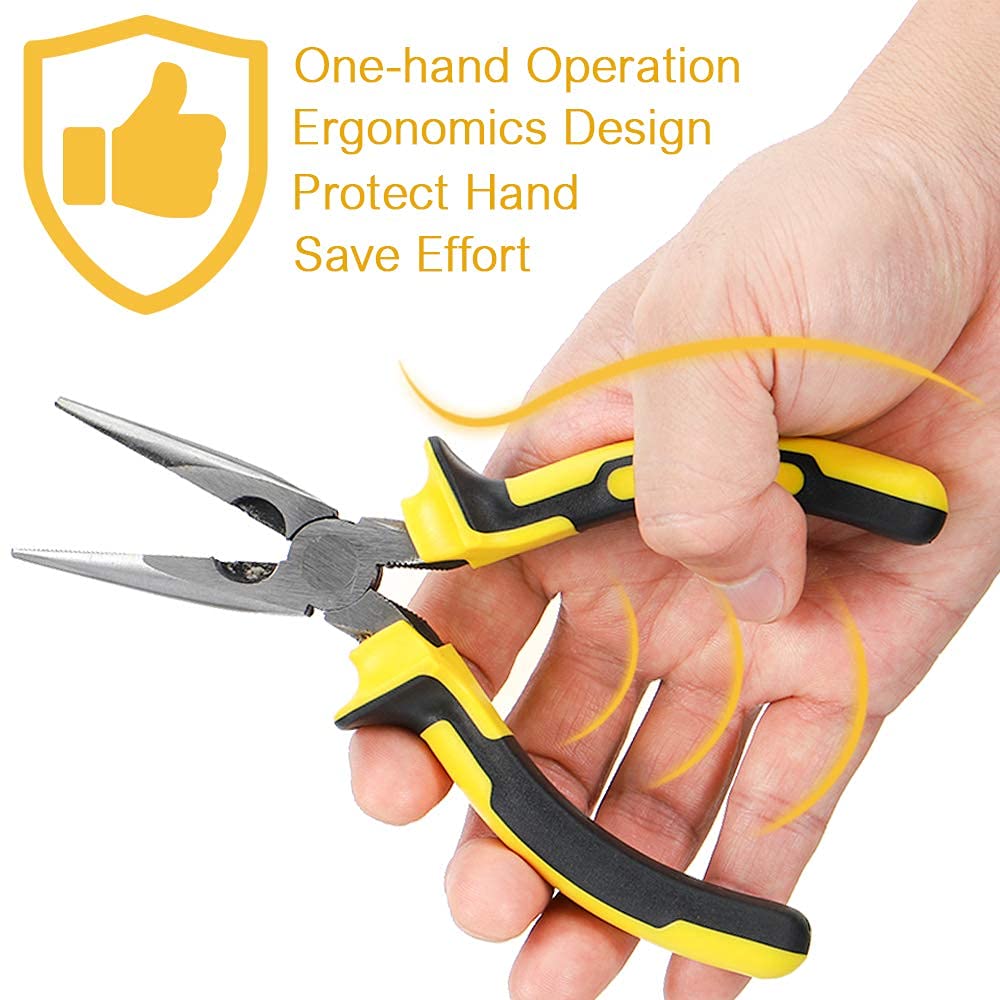Dowell 6 Inch Long Nose Pliers Needle Nose Pliers With Wire Cutter Nickel Chromium Steel Construction Professional Handle