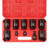 Egofix 1/2' Drive Deep Impact Socket Set, 10-Piece Spindle Axle Nut Socket Set Cr-Mo 6 Point 30,31,32,33,34,35,36Mm Metric Socket, With 3/8' - 1/2' Socket Adapter Set Universal Joint Socket