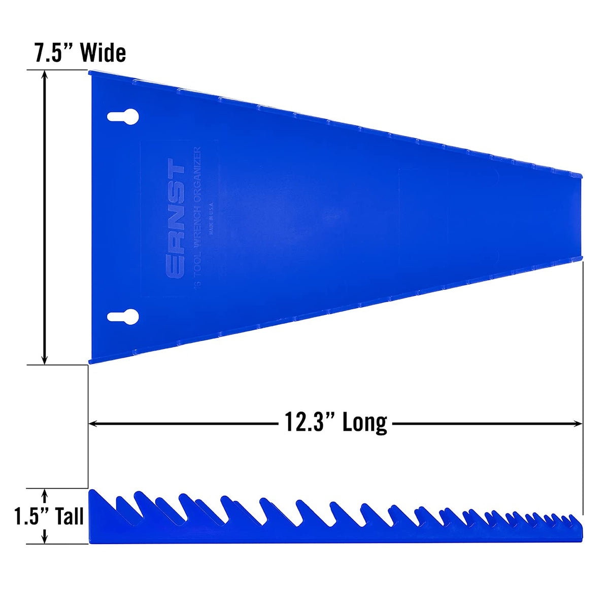 Q: What is the size of the ERNST 5050 Standard Wrench Organizer Tray?A: The ERNST 5050 Standard Wrench Organizer Tray measures 12.2 inches in length, 7.5 inches in width, and 1.5 inches in height, making it a compact solution for organizing your tools.