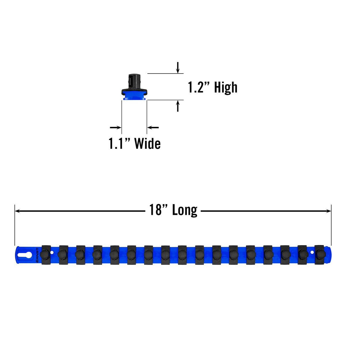 Ernst Manufacturing 18-Inch Socket Organizer With 17 1/2-Inch Twist Lock Clips, Blue (8405-Blue-1/2)