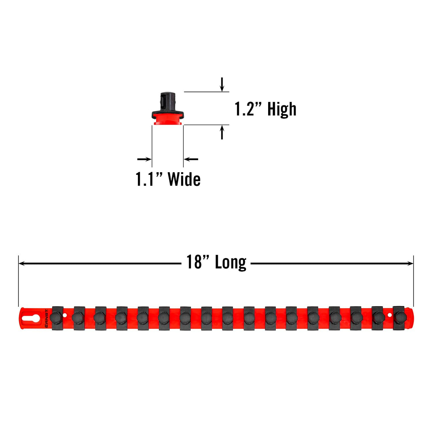 Ernst Manufacturing 18-Inch Socket Organizer With 17 1/2-Inch Twist Lock Clips, Red (8402-Red-1/2)