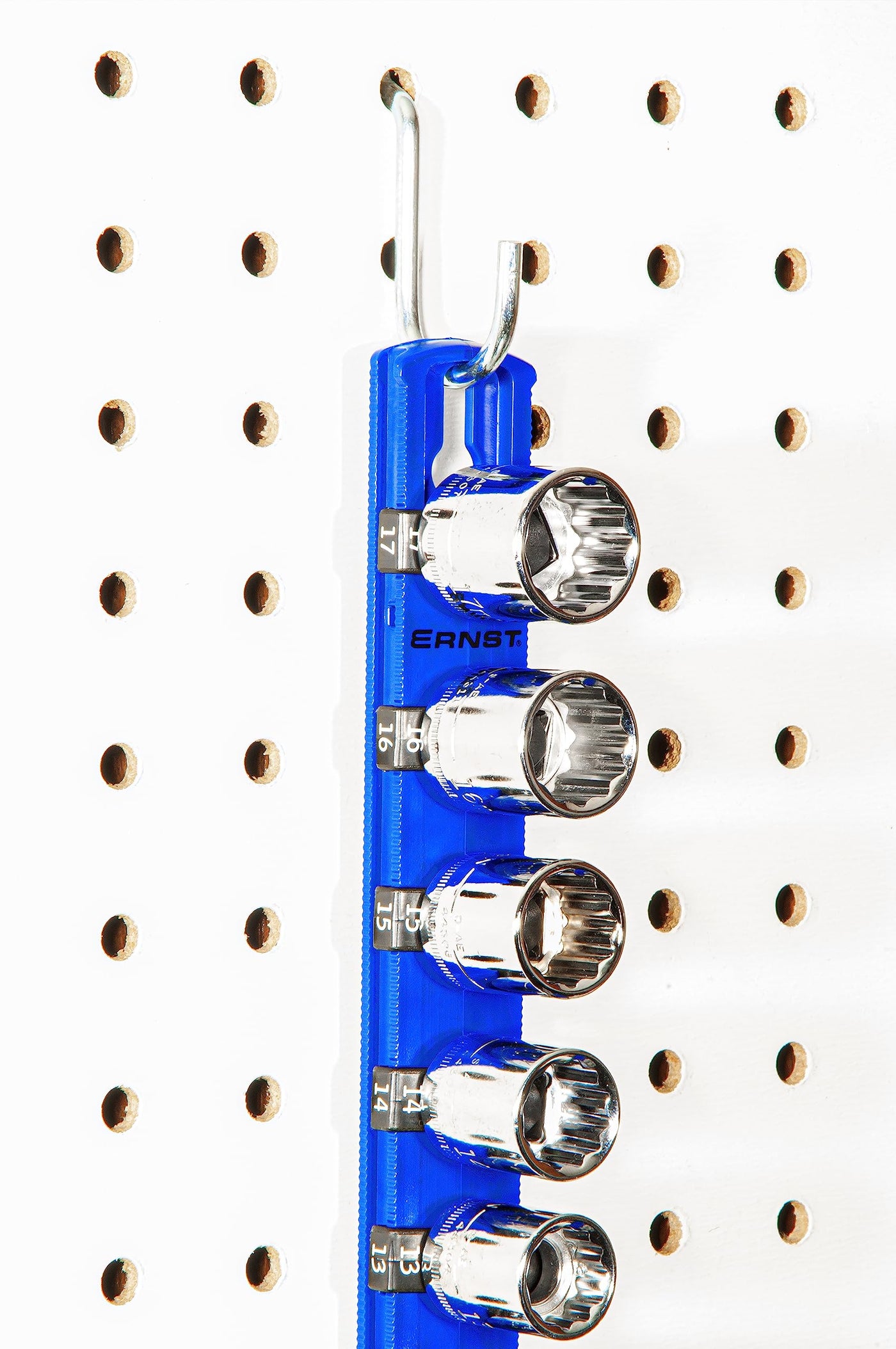 Product Descriptionernst 18-Inch Universal Socket Organizers Come With 17 1/2-Inch Drive Twist Lock Socket Clips. Twin Serrated Edges Provide 2-Sided Socket And Accessory Loading. Additional Socket Clips And Other Add-Ons Snap On Both Sides For Maximum Socket Storage. It Can Hang Vertically For Convenient Storage. Dura-Pro Twist Lock Clips Provide All The Versatility You Have Come To Expect From Ernst, Now With ''Stay Put'' Security. With A Simple Twist Your Sockets Are Firmly Secured In A Locked Position. Twist In The Reverse Direction And Your Sockets Are Free To Remove. The Tension Is A Perfect Medium So You Do Not Have To Fight With Your Sockets To Lock Them Into Place And You Don'T Have To Worry About Them Being Too Loose. Just A Simple 1/8 Turn And Your Tools Are Secured. Add, Remove, And Insert Clips On Any Portion Of The Socket Rail To Fit Your Custom Set Of Tools. Socket Clips Click Into Place, Can Be Easily Repositioned And Installed Between Previously Placed Clips. End Stops On Each End Of The Socket Organizer Keep Socket Clips Securely Fastened. No Other Socket Storage Item On The Market Will Provide This Amount Of Options. Integrated Design Will Work With Other Great Products From Ernst. 96 I.D. Stickers Are Included With Each Organizer For Easy Tool Identification. Made In The Usa. Lifetime Guarantee. Tools Not Included.From The Manufacturerernst 18-Inch Universal Socket Organizers Come With 17 1/2-Inch Drive Twist Lock Socket Clips. Twin Serrated Edges Provide 2-Sided Socket And Accessory Loading. Additional Socket Clips And Other Add-Ons Snap On Both Sides For Maximum Socket Storage. It Can Hang Vertically For Convenient Storage. Dura-Pro Twist Lock Clips Provide All The Versatility You Have Come To Expect From Ernst, Now With ''Stay Put'' Security. With A Simple Twist Your Sockets Are Firmly Secured In A Locked Position. Twist In The Reverse Direction And Your Sockets Are Free To Remove. The Tension Is A Perfect Medium So You Do Not Have To Fight With Your Sockets To Lock Them Into Place And You Don'T Have To Worry About Them Being Too Loose. Just A Simple 1/8 Turn And Your Tools Are Secured. Add, Remove, And Insert Clips On Any Portion Of The Socket Rail To Fit Your Custom Set Of Tools. Socket Clips Click Into Place, Can Be Easily Repositioned And Installed Between Previously Placed Clips. End Stops On Each End Of The Socket Organizer Keep Socket Clips Securely Fastened. No Other Socket Storage Item On The Market Will Provide This Amount Of Options. Integrated Design Will Work With Other Great Products From Ernst. 96 I.D. Stickers Are Included With Each Organizer For Easy Tool Identification. Made In The Usa. Lifetime Guarantee. Tools Not Included.