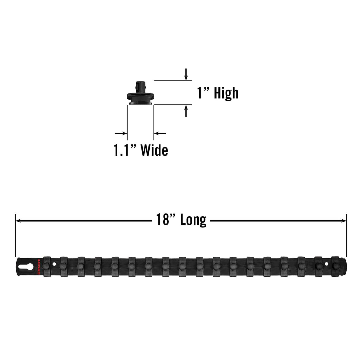 Ernst Manufacturing 18-Inch Socket Organizer With 18 3/8-Inch Twist Lock Clips, Black (8421-Black-3/8)