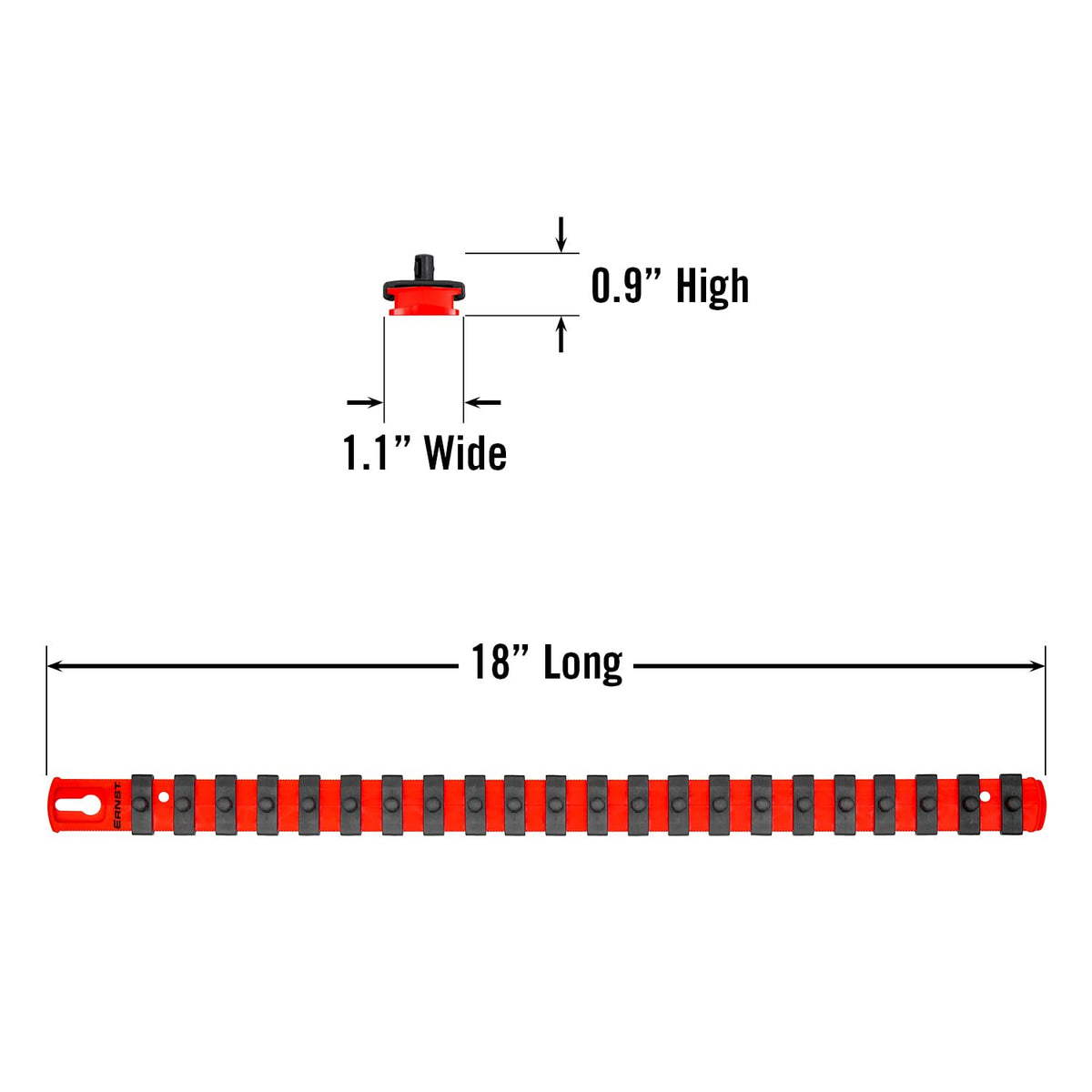 Ernst Manufacturing 18-Inch Socket Organizer With 22 1/4-Inch Twist Lock Clips, Red (8400-Red-1/4)