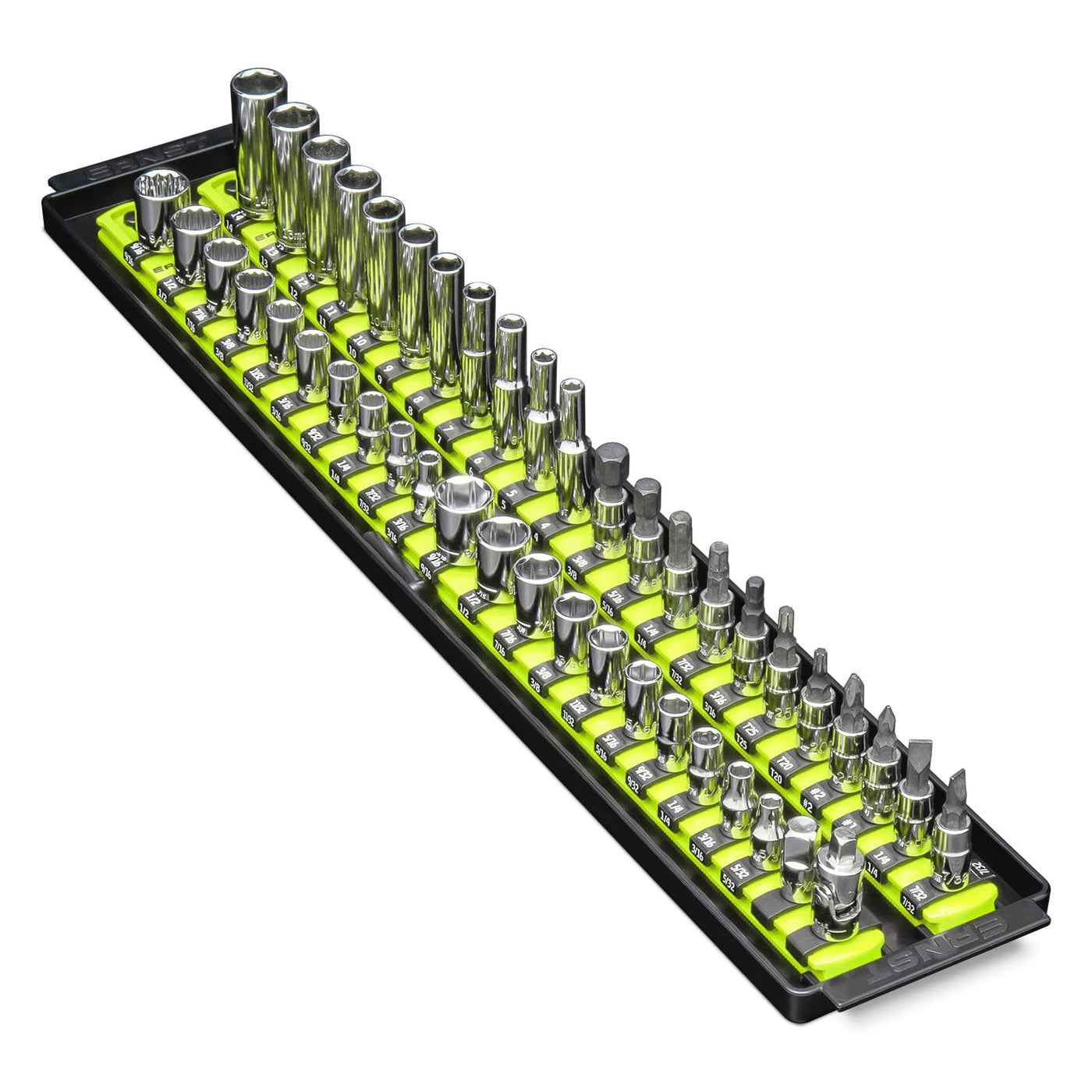 Capitalize On Maximum Configuration Possibilities With The Socket Boss Universal Twist-Lock Socket Tray From Ernst Manufacturing, Now In A High-Visibility Color Thats Easy To See In Low Light Conditions. Versatility Is A Must For Organizing Any Socket Set. Individual Rails Can Be Removed Or Switched For Customization. Add Or Remove Socket Clips, Label Socket Sizes With I.D. Stickers, Trade Colors, Swap Out Drive Sizes, Add Ratchet And Extension Holders: The Options Are Limitless For Organizing Your Own Set Of Sockets. Perfect For Storage In The Drawer, On The Bench, Or On The Go. This Compact Set Fits A Large Set Of Tools Using A Small Amount Of Storage Space. Its Easy To Grab And Go, With Handles On Each End. Twist-Lock Clips Keep Sockets Secured For Transport And Prevent Tool Loss. Even Upside Down, Sockets Are Locked In Tight. Socket Rails Are Locked In The Tray For Security And Unlock With The Push Of A Button. Universal Socket Rails Have Also Been Improved With Molded End Stops And Extended Space For Sockets. The Full Length Of The 18-Inch Rail Can Be Loaded With Sockets. Ernst Recommends Different Colors (Red, Blue, Or High Visibility Yellow) For Easier Identification Between Sae And Metric Tools. This Package Includes: One Socket Tray, Two Universal Socket Rails, And 30 Twist-Lock Socket Clips For 1/4-Inch Drive Sockets. Made In Usa. Measures 14.88 By 3.63 By 1.24 Inches. Keenly Aware Of The Need For Mechanics To Stay Organized, Ernst Manufacturing Offers A Range Tool Organization Products Including Socket Boss Socket Trays, No-Slip Low Profile Wrench Rails And Screwdriver Rails, And More. Ernst Produces All Of Its Products In The Usa And Is Committed To Remaining An American Manufacturer.