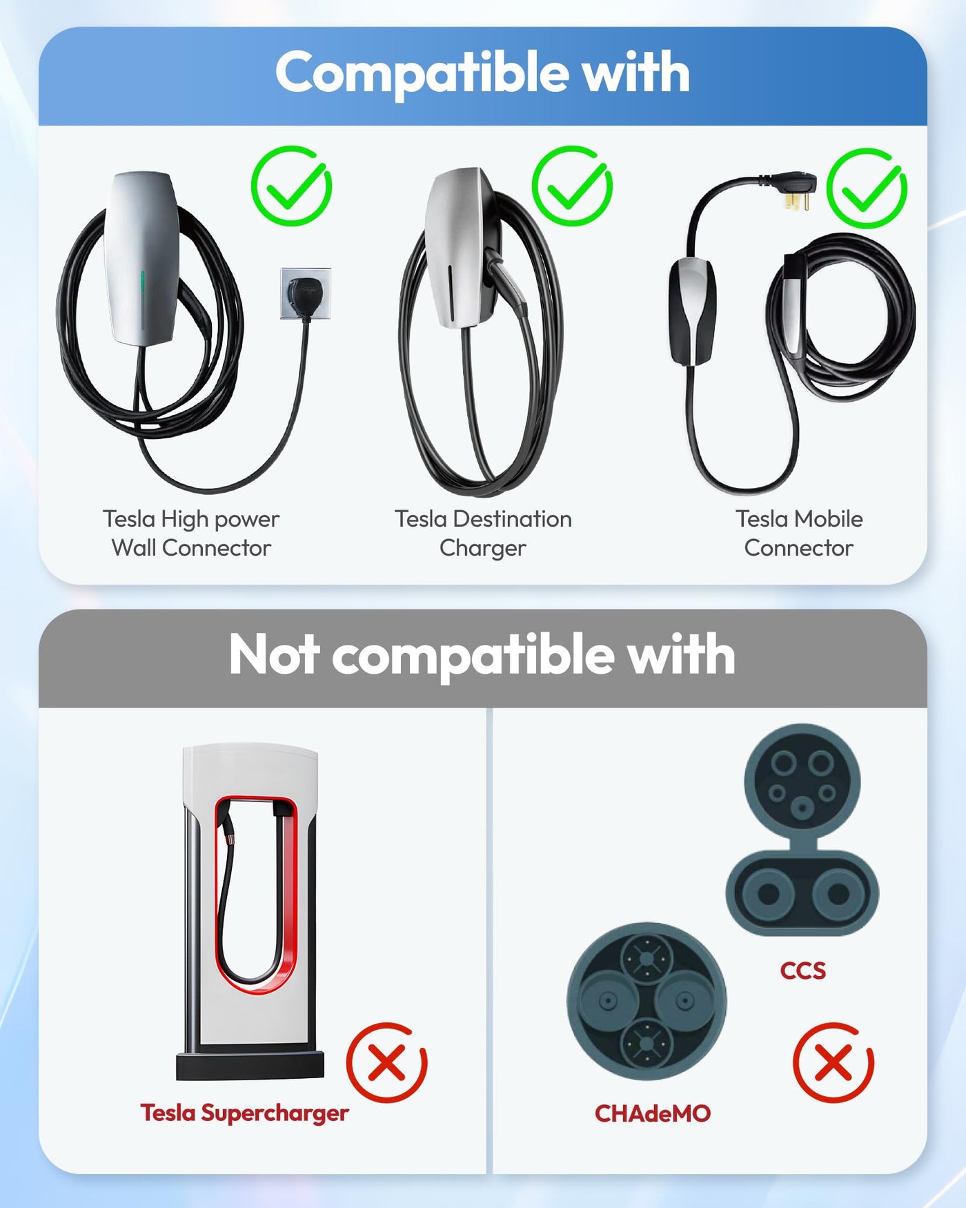 Compatible with Tesla Charger Adapter Fit for J1772 EVs Compatible with tesla charger to j1772 adapter for j1772 EVs Compatible with tesla charging adapter for non-Tesla EVs Compatible with tesla charging adapter Compatible with tesla charger converter Compatible with Tesla to J1772 charging adapter