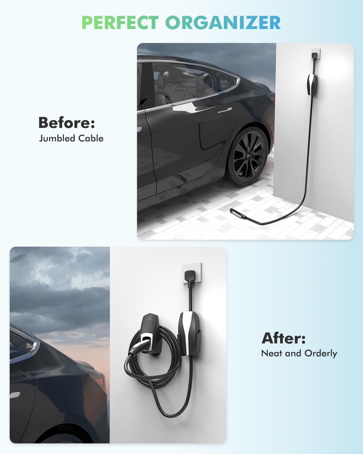 Stylish Organizer for Any Tesla Connector: The EVDANCE Charging Cable Holder is a must-have accessory for Tesla Model 3, Model Y, Model X, and Model S owners. It creates a sleek charging station in your garage, compatible with all Tesla connectors, including Tesla Mobile Connector Gen1/2 and Tesla Wall Connector Gen1/2/3. Keeps Cable Neat and Secure: Our Tesla Cable Organizer surpasses ordinary hooks. It ensures a snug fit between the charging head and the socket, keeping the cable elevated and preventing accidental drops. Premium Durability for Indoor or Outdoor Use: Designed for both indoor and outdoor installations, our Tesla holder is made from high-quality PC+ABS material that is long-lasting and resistant to deformation. With its reinforced structure and four screws, it can bear a minimum weight of 30kg, providing ample support for a 30-foot-long cable. Additional Chassis Bracket: Setting us apart from other charger holders in the market, we provide an extra mobile connector bracket to reduce additional wear on adapters and sockets. Quick and Easy Installation: The Tesla Charging Cable Holder can be installed in just a few minutes, requiring only seven drywall anchors and screws. The anchors are specifically designed for drywall installation (not suitable for wall studs). The charger head fits snugly into the slot and features a groove to prevent slippage. 1-Year Warranty and 24/7 Sales Service by EVDANCE: We stand behind our product with a 1-year warranty and round-the-clock customer support. Adding this accessory to your Tesla car is a smart choice that everyone should consider.