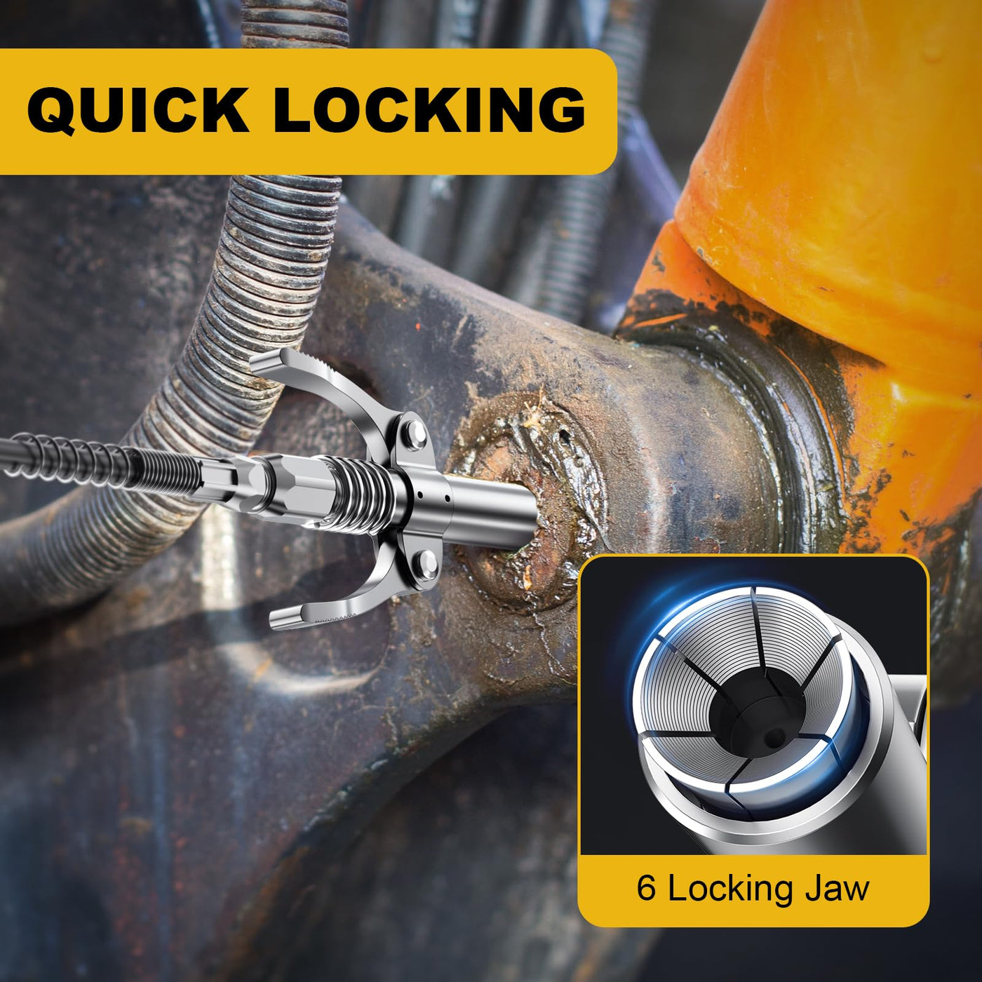 The Fantictas Grease Gun Set is a high-quality tool designed for efficient lubrication. With its leak-proof pistol grip and lock coupler, this grease gun delivers a powerful pressure of 8000 PSI. The set includes an 18'' spring flex hose, two standard hoses, a coupler, a rigid pipe, a sharp nozzle, and Grease Injector, Needle. This comprehensive set provides all the necessary components for easy and precise greasing. Whether you're working on machinery or vehicles, this grease gun set is a reliable choice to ensure smooth operation and optimal performance.