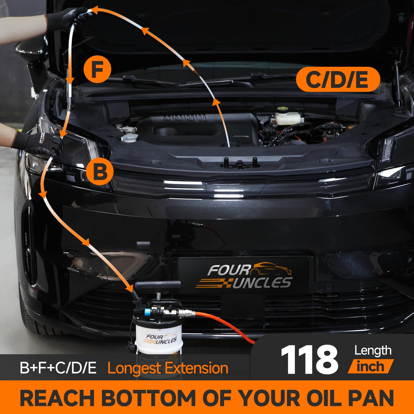 Four Uncles 6.5L Oil Extractor - Pneumatic/Manual Vacumm Fluid Extractor With Pump Tank Remover & 5 Tubes For Oil Change And A B