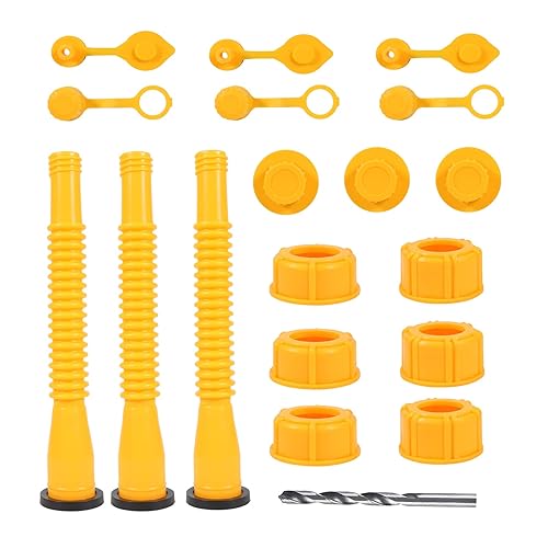 QJIUBA Gas Can Spout Replacement Nozzle for 1-10 Gallon Cans, Includes Vent Caps & Rubber Gasket, Yellow