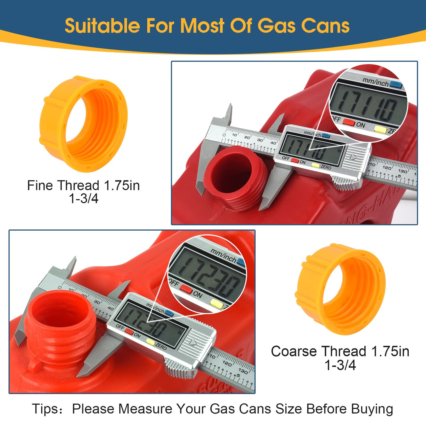 Replaceable Vent Caps: The included vent caps enhance functionality by covering more oil cans. The gas can vent caps-A is ideal for cans without a vent at the end, requiring simple drilling for installation. The vent caps-B is designed for cans with a vent cap at the tail.