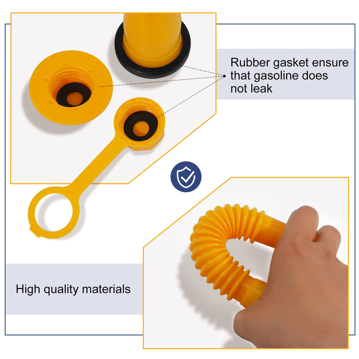 Q: Are the gas can spouts durable and safe to use?A: Yes, the gas can spouts are made of high-quality HDPE material, which is bendable and durable. They feature thicker rubber gaskets to ensure a tight and secure fit, preventing leaks and spills.