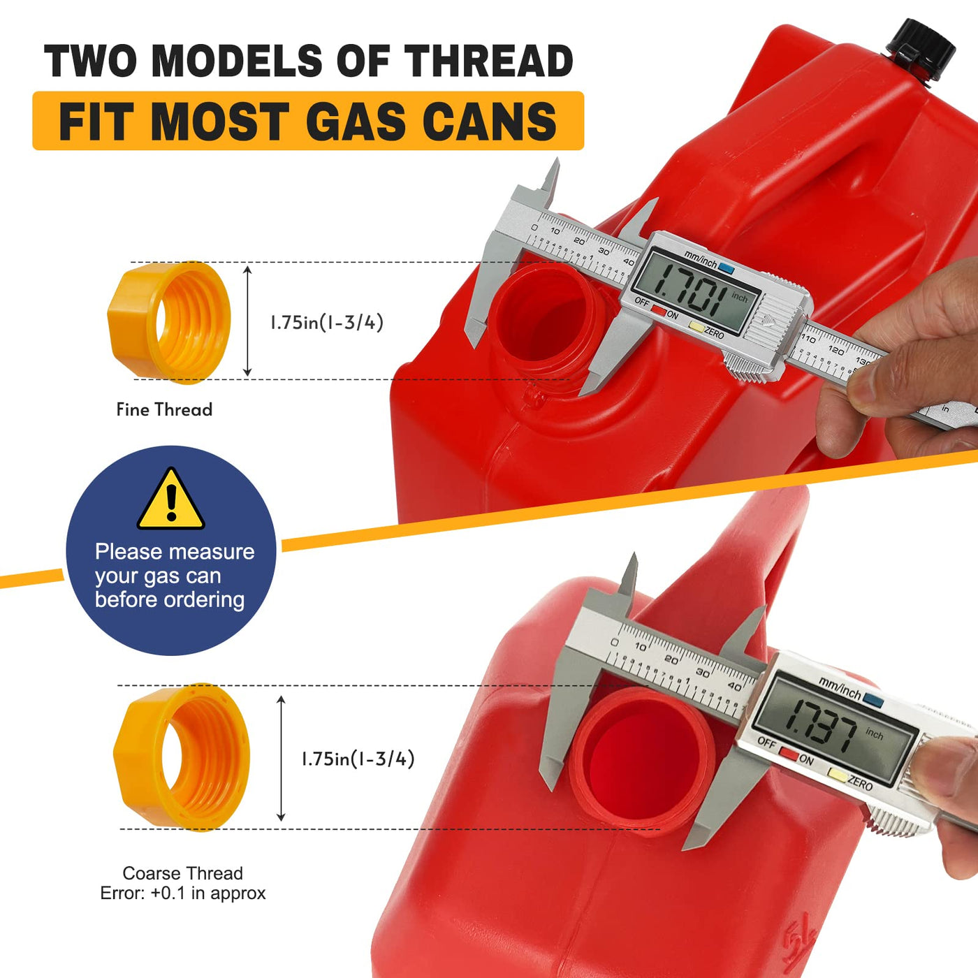 Q: Do the spouts allow for smooth pouring?A: Yes, the gas can spouts are designed with two types of vent caps that facilitate easy pouring, ensuring a smooth flow of gasoline without spills.
